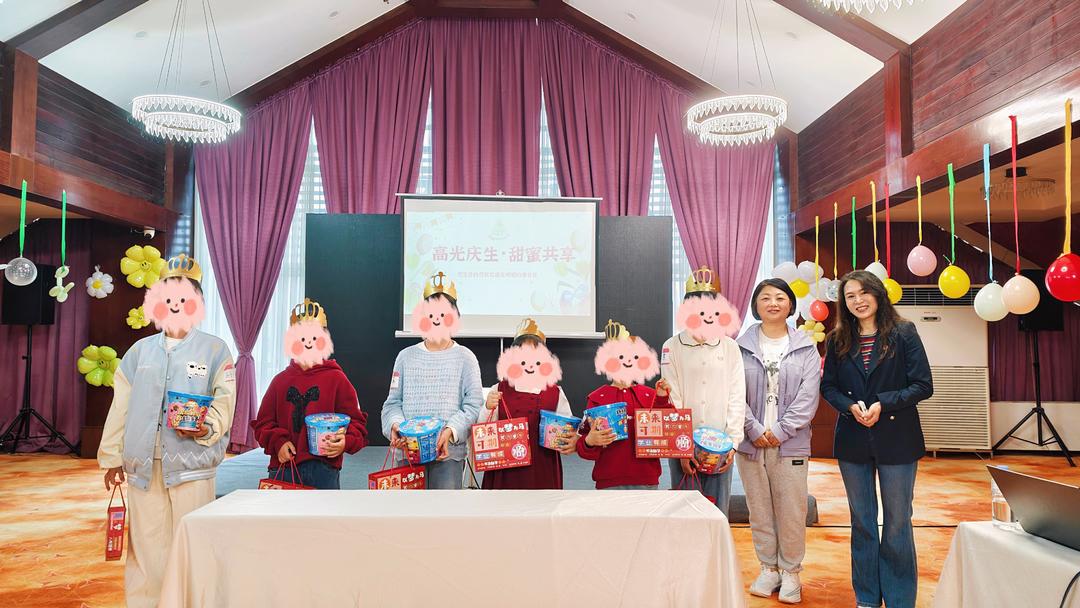 上午10时许,活动迎来最温馨的时刻,一位位“小寿星”被邀请上台。灯光渐暗,志愿者推着生日蛋糕缓缓入场,全场齐唱《生日快乐歌》。孩子们闭上眼睛许下心愿,共同吹灭蜡烛。志愿者将切好的蛋糕和甜品逐一送到孩子手中,并细心规避饮食禁忌,确保每位孩子吃得安心、开心。