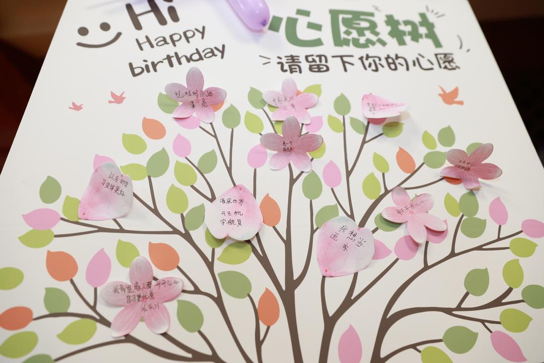 上午9时30分,活动在轻柔的童趣音乐中拉开帷幕。孩子们在志愿者引导下有序签到,贴上专属生日姓名帖,并在心愿墙上写下自己的生日愿望。“希望中考成功”“原自己以后能考上大学,开开心心的生活”“希望妈妈身体健康”……稚嫩的笔触下,藏着孩子们最纯真的期盼。心愿墙前,社工和志愿者们耐心陪伴,轻声交流,帮助孩子们缓解陌生感,现场洋溢着温暖与期待。