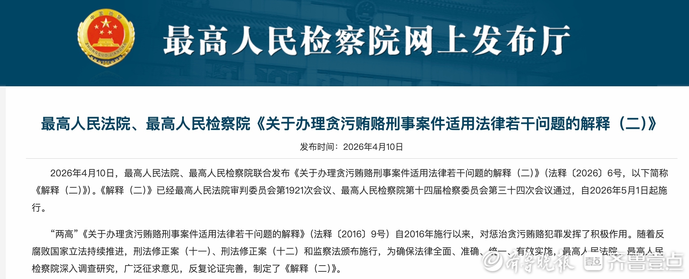 近日,“5月1日起医务人员吃回扣直接入刑”的消息引发公众广泛热议。事实上,此次并非出台一部全新的法律,而是最高人民法院、最高人民检察院于2026年4月10日发布的《关于办理贪污贿赂刑事案件适用法律若干问题的解释(二)》(以下简称《解释(二)》),将于5月1日正式施行。