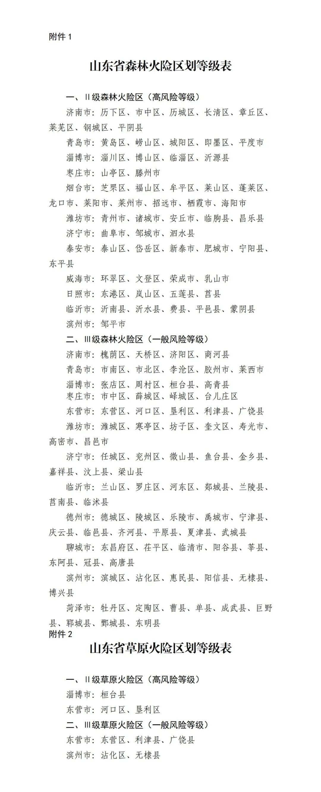 日前,山东省自然资源厅发布关于公布山东省森林草原火险等级区划成果的公告,确定全省58个县(市、区)为Ⅱ级森林火险区(高风险等级),78个县(市、区)为Ⅲ级森林火险区(一般风险等级);3个县(市、区)为Ⅱ级草原火险区(高风险等级),5个县(市、区)为Ⅲ级草原火险区(一般风险等级)。