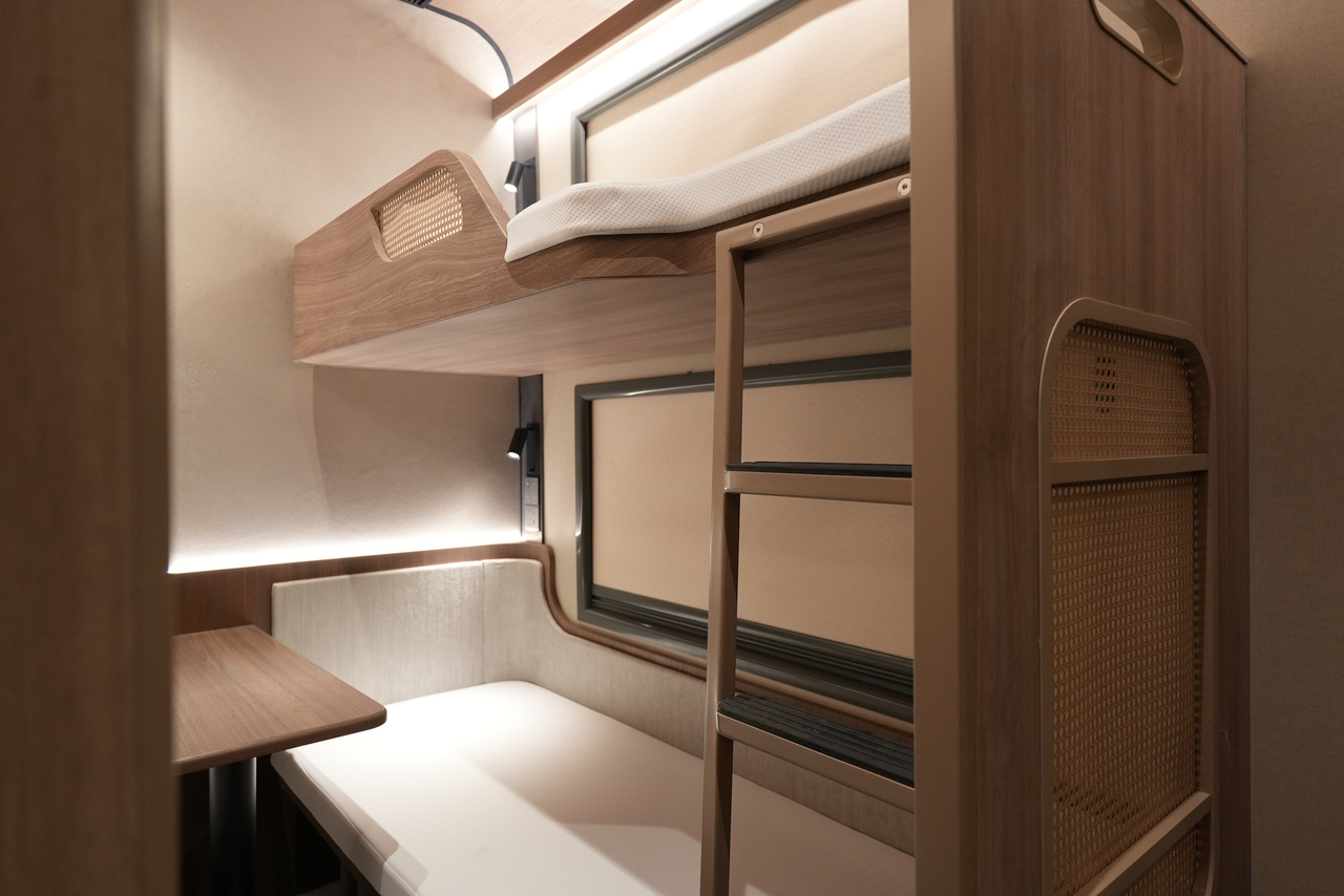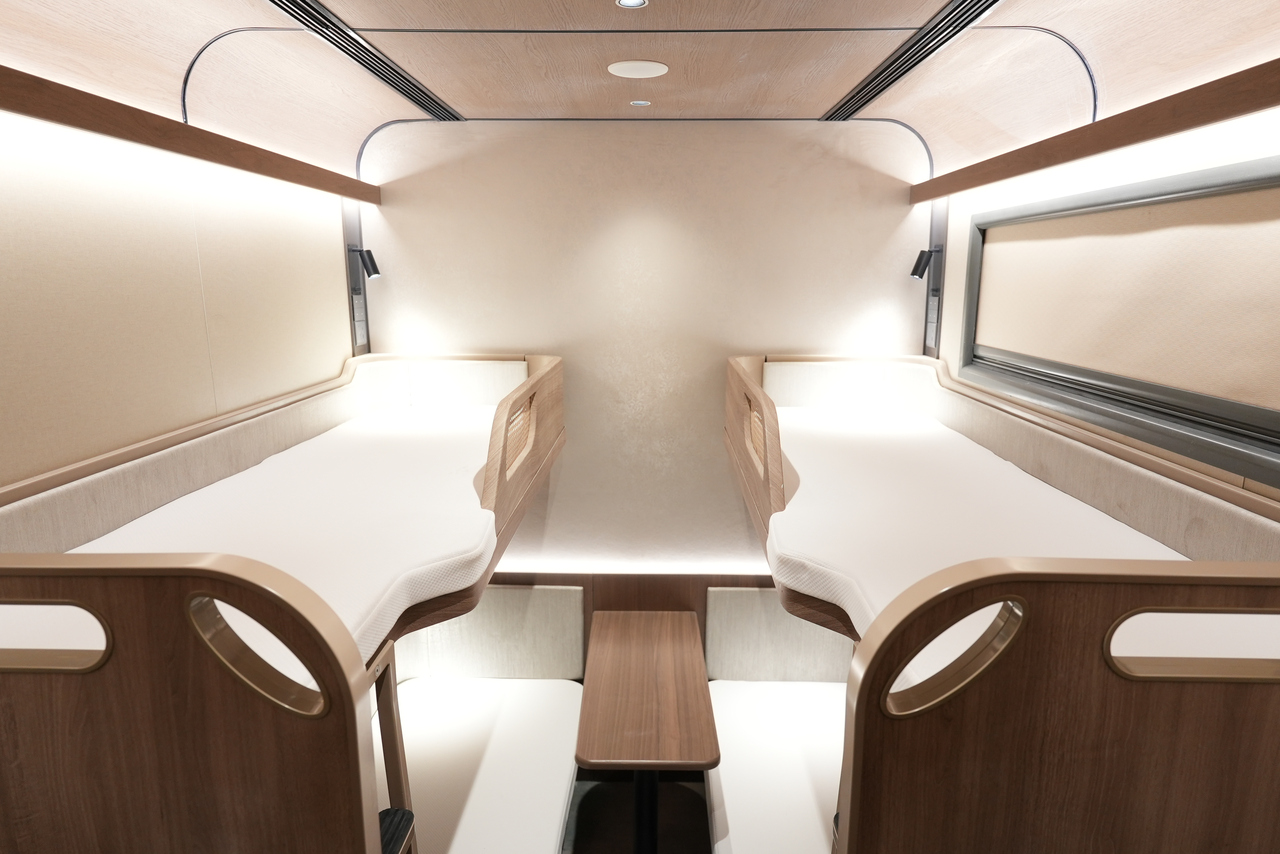 全车采用独立包房设计,分两人间、三人间、四人间三种房型,每间均配备独立卫浴,彻底告别传统长途列车公共洗漱间的不便。