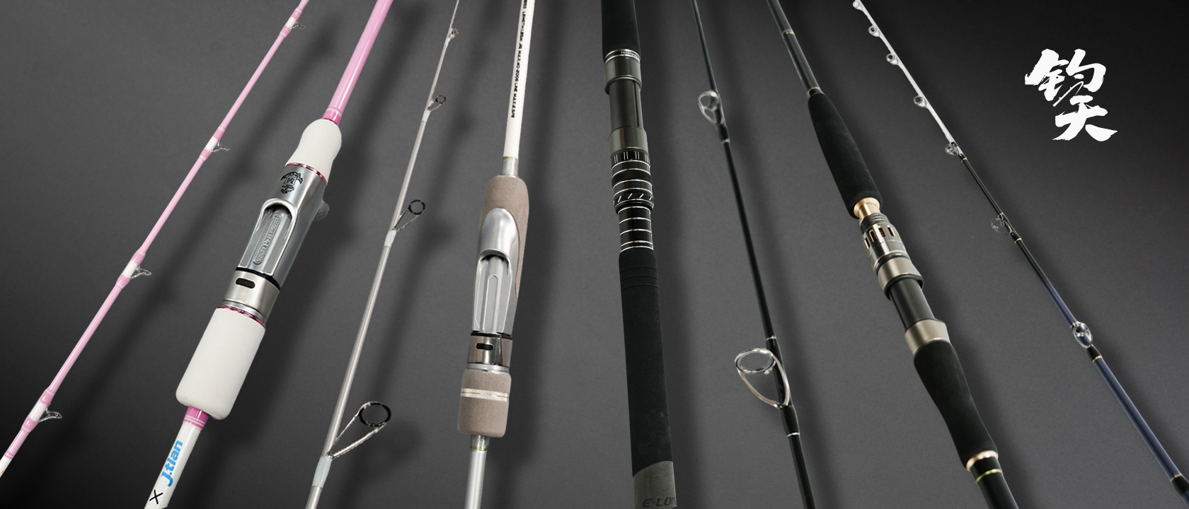 ↑从左至右依次为觅龙、银棍、银啸、银牙四款海钓渔具。