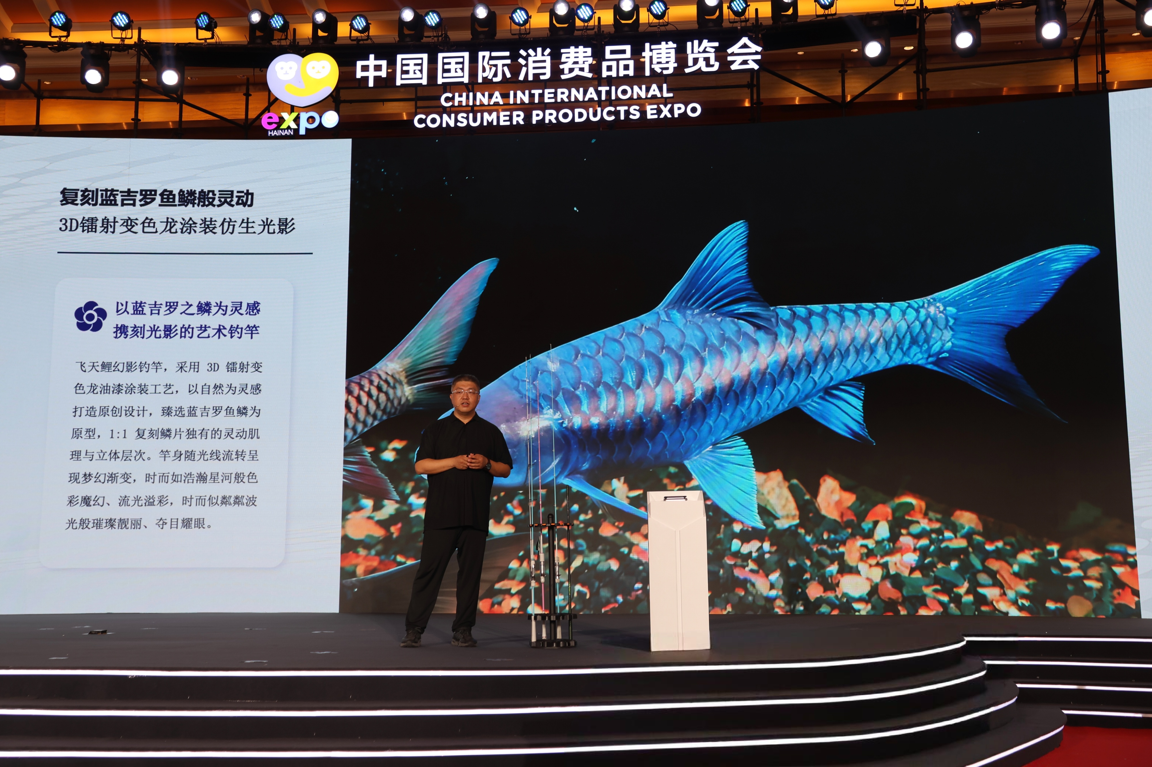 ↑4月13日,第六届消博会威海怡隆渔具有限公司新品发布会现场。
