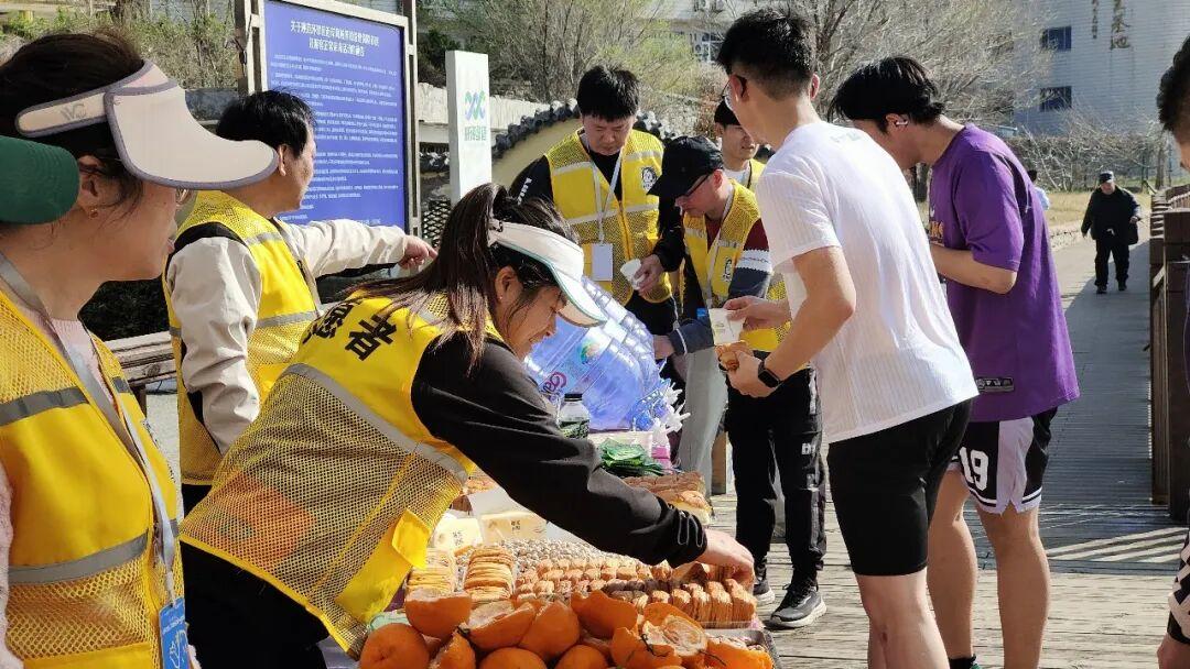 一场成功的赛事,离不开服务人员的默默守护。在赛道起终点、沿途补给站和医疗点,数百名志愿者和医护人员穿梭忙碌,为选手提供路线指引、能量补给、医疗救助等服务。第一次当志愿者的路子轩站在赛道关键节点,负责引导跑者:“看到选手们展现出的体育精神很受感染,下次有机会我也想尝试参加这样的比赛。”