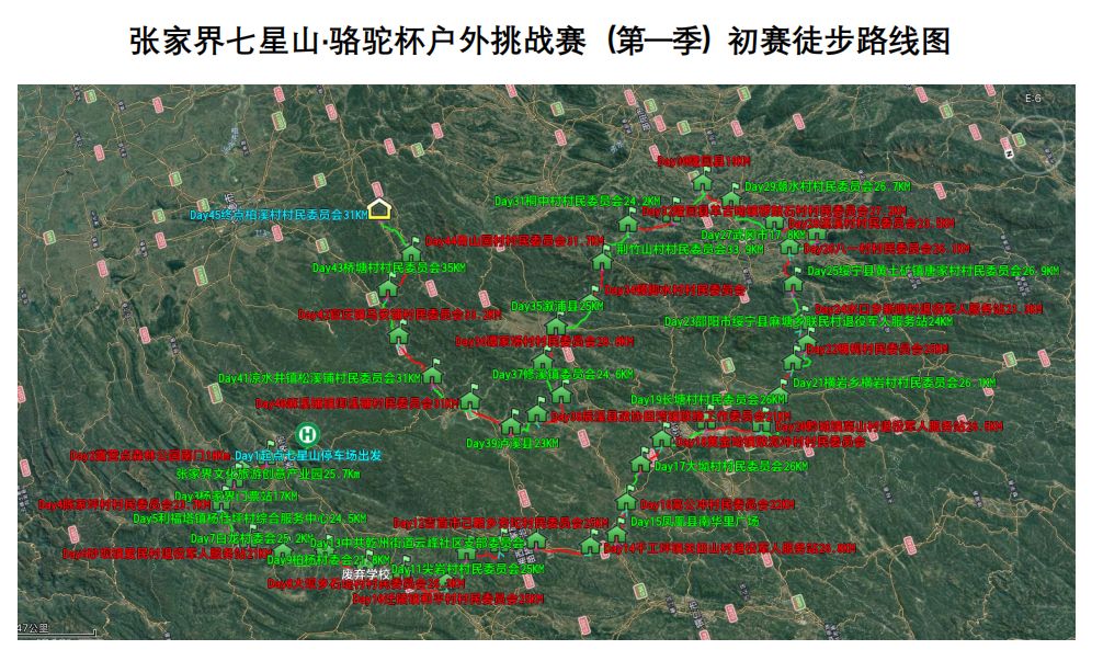 此次初赛4月14日启动,赛期预计45天,初赛结束休整7天后,启动决赛,决出冠军即结束比赛。初赛的核心阵地为张家界市永定区。赛事线路包括:环大张家界国际旅游区布局,覆盖永定、武陵源、桑植、永顺、保靖、花垣、吉首、凤凰、古丈、麻阳、洪江、武冈、隆回、溆浦、泸溪、桃源等区县,以徒步动线串联沿线各区县核心文旅资源、民俗文化、特色产业及乡村振兴示范点。