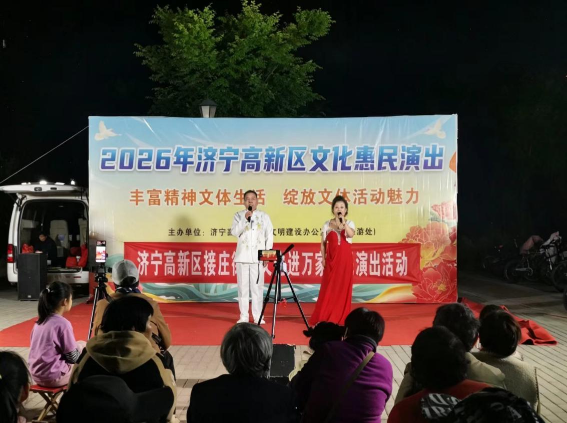 夜幕降临,华灯初上,济宁高新区接庄街道苏庄新村的文化广场上人头攒动、掌声阵阵。为深入贯彻落实文化惠民工程,丰富辖区群众精神文化生活,把优质文化服务送到群众“家门口”,4月12日,2026年济宁高新区文化惠民演出暨接庄街道“文化进万家”惠民演出活动在苏庄新村精彩开演,为当地村民带来了一场精彩纷呈的视听盛宴。