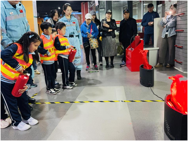 紧接着,进入灭火器和消防面罩的实操学习环节。基地讲解员详细演示了灭火器的使用步骤、消防面罩的佩戴方法,并组织预备队员们进行模拟灭火训练。预备队员们两两一组,在基地讲解员的指导下,小心翼翼却又认真专注地操作着灭火器,对准“火源”精准喷射,一次次尝试、一遍遍练习,熟练掌握了灭火的核心技能。高层烟雾逃生体验、公共交通应急训练环节,大家依次有序参与,在模拟场景中学习如何快速辨别危险、如何规范逃生,每一个动作都规范标准,每一次撤离都沉着冷静。