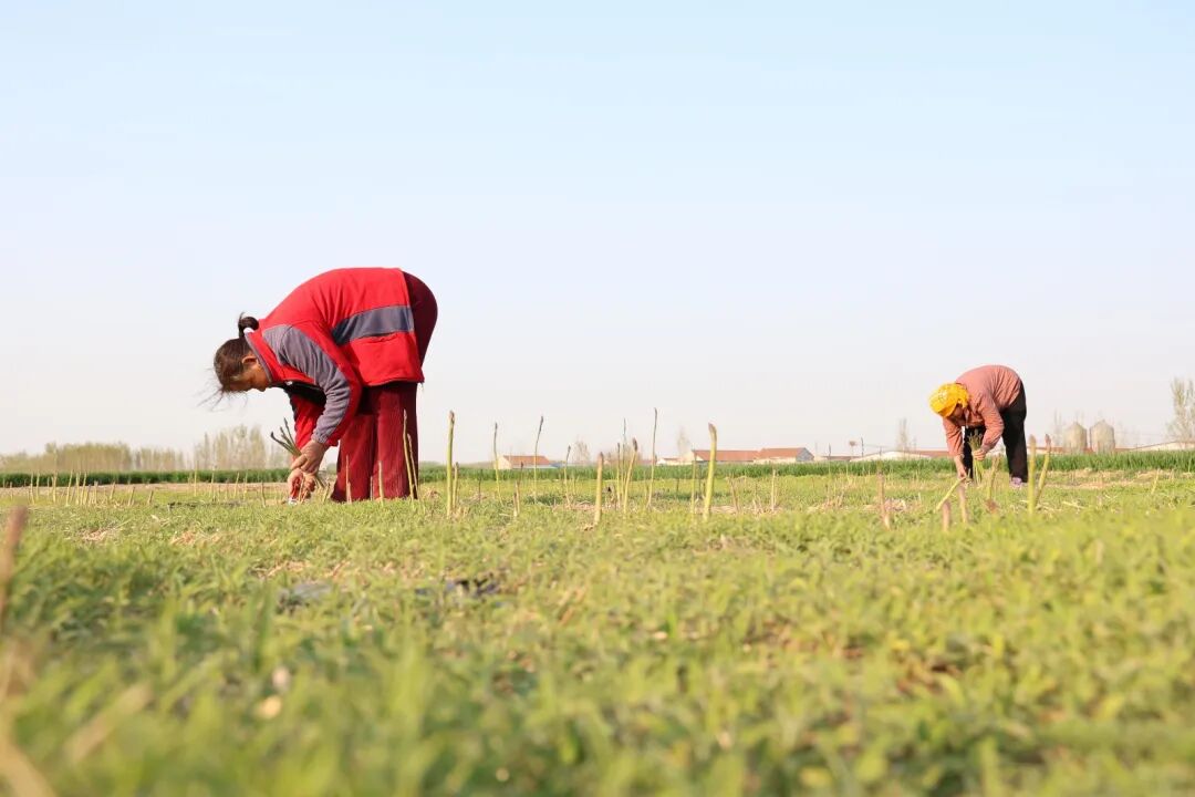 春日时节,在邹平市魏桥镇北韩村的7亩芦笋田里,鲜嫩的芦笋破土冒尖,迎来头茬丰收。农户们穿梭田间地头,弯腰、采摘、装筐,指尖翻飞间,一根根翠绿芦笋被收入篮中,繁忙景象尽显乡村产业的蓬勃生机。