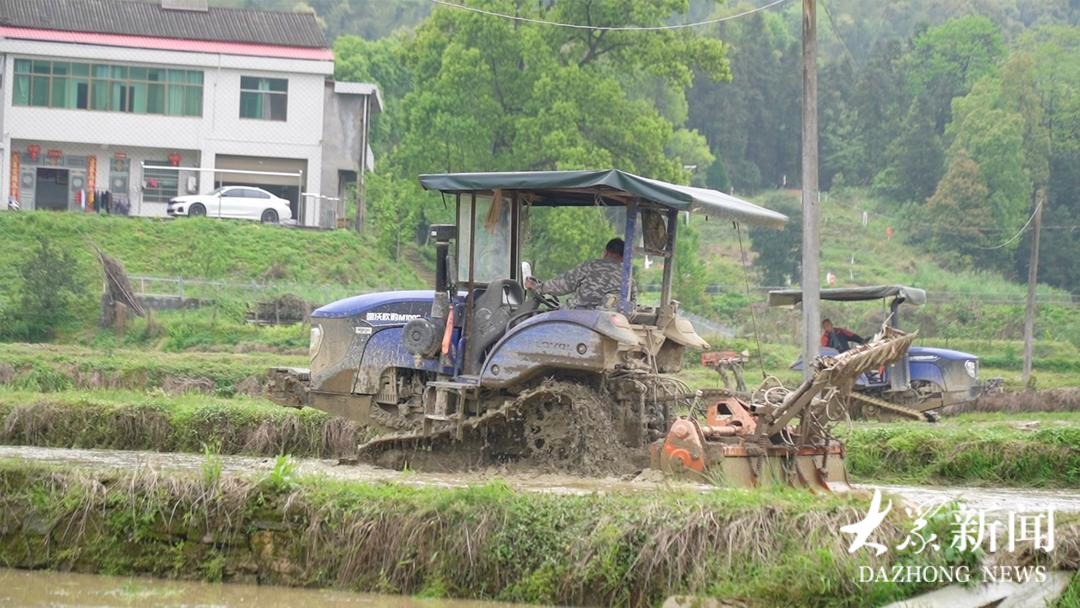 “这些地有80多亩,今天三台车准备完成,下雨有点耽误。”为了赶工,钟建钦特意叫来了两位“机友”搭把手,三人分工协作,高效推进耕种进度。