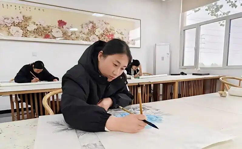 牡丹文化也延伸到艺术创作领域。在巨野县,农民放下锄头拿起画笔,工笔牡丹画从2015年年创产值3.5亿元一路攀升,2024年飙升至45亿元,巨幅工笔牡丹画惊艳首届世博会和青岛上合峰会,亮相美国纽约时代广场。牡丹瓷雕、牡丹香薰、牡丹汉服……160余款文创产品让牡丹走进千家万户的生活场景。连续举办的“花开盛世”文创大赛,每年吸引数万件作品投稿参赛,来自各地的创意设计,持续为牡丹产业注入文化内涵。