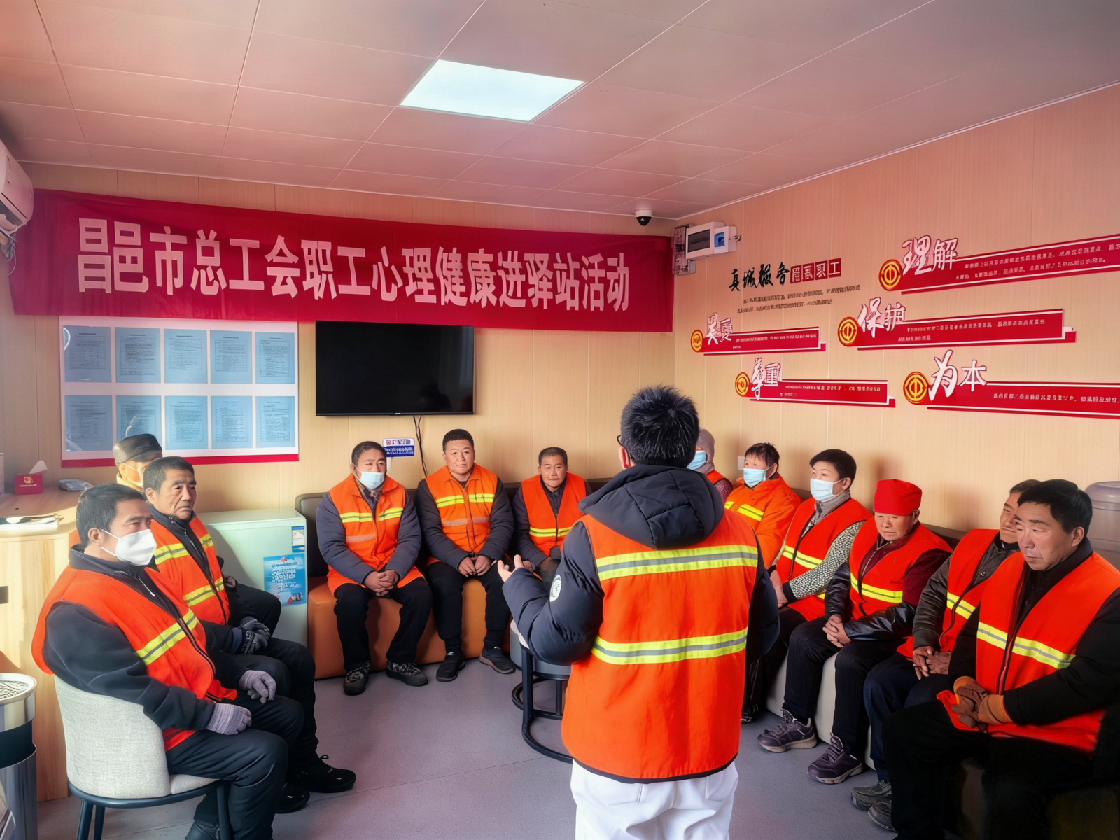工作人员针对户外劳动者工作强度高、作息不规律等职业特点,深入剖析压力产生的根源,系统讲解常见心理问题的识别与应对方法,同时结合真实案例,引导大家学会疏解压力,以积极乐观的心态面对生活与工作。