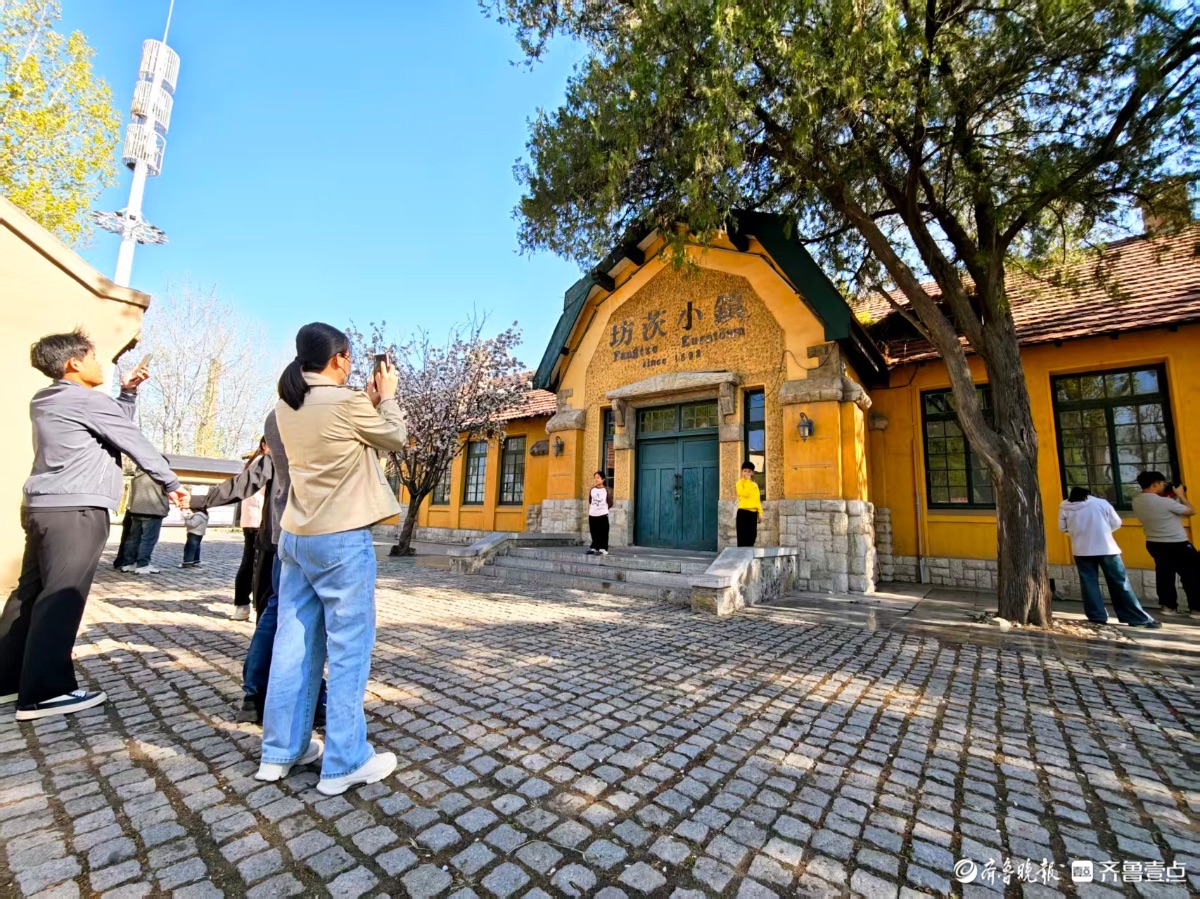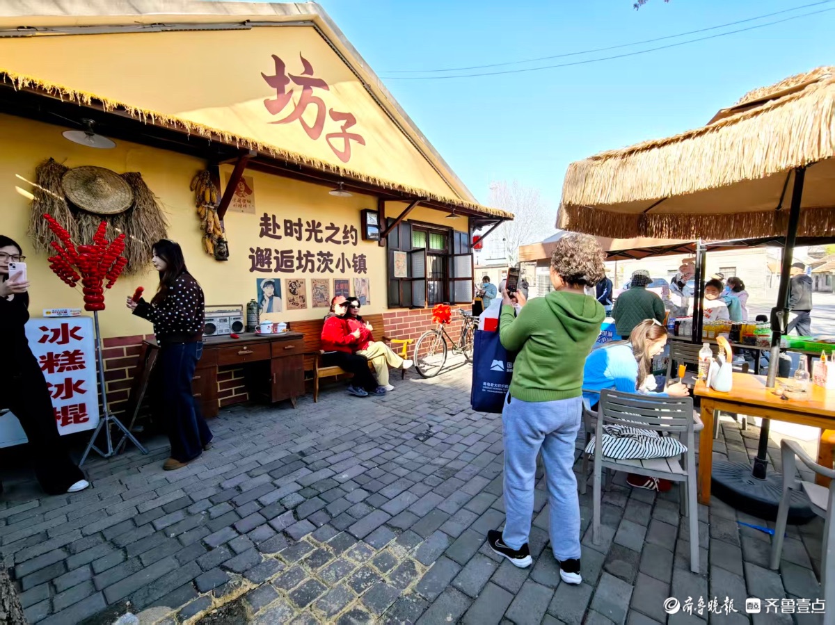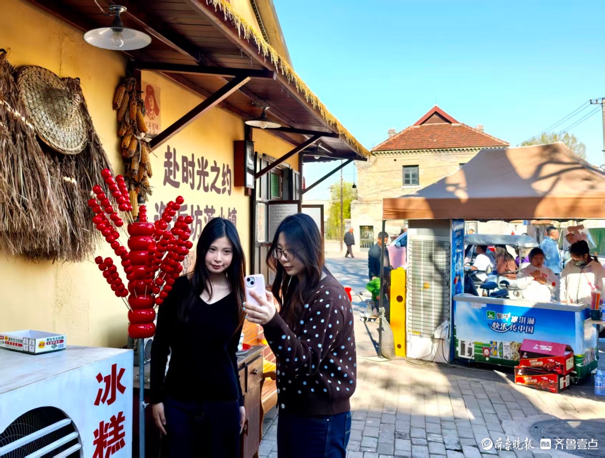 4月6日,在潍坊市坊子区坊茨小镇文化街区,来自全国各地的游客正在游览打卡。坊茨小镇位于潍坊市坊子区,以胶济铁路坊子段为中轴线向两侧发展。随着电视剧《南来北往》《家有七郎》等影视作品在此取景拍摄,使这里成为闻名全国的热门旅游打卡地。高伟摄