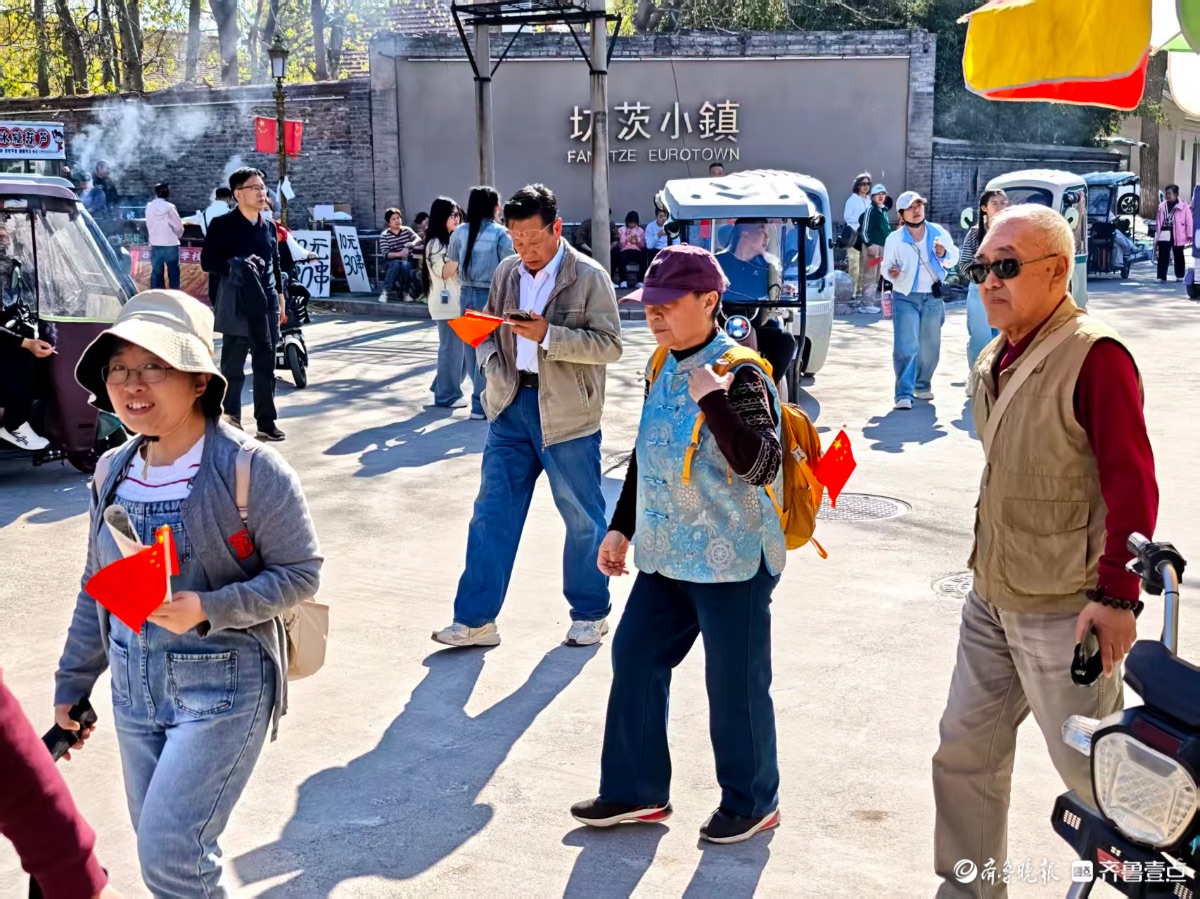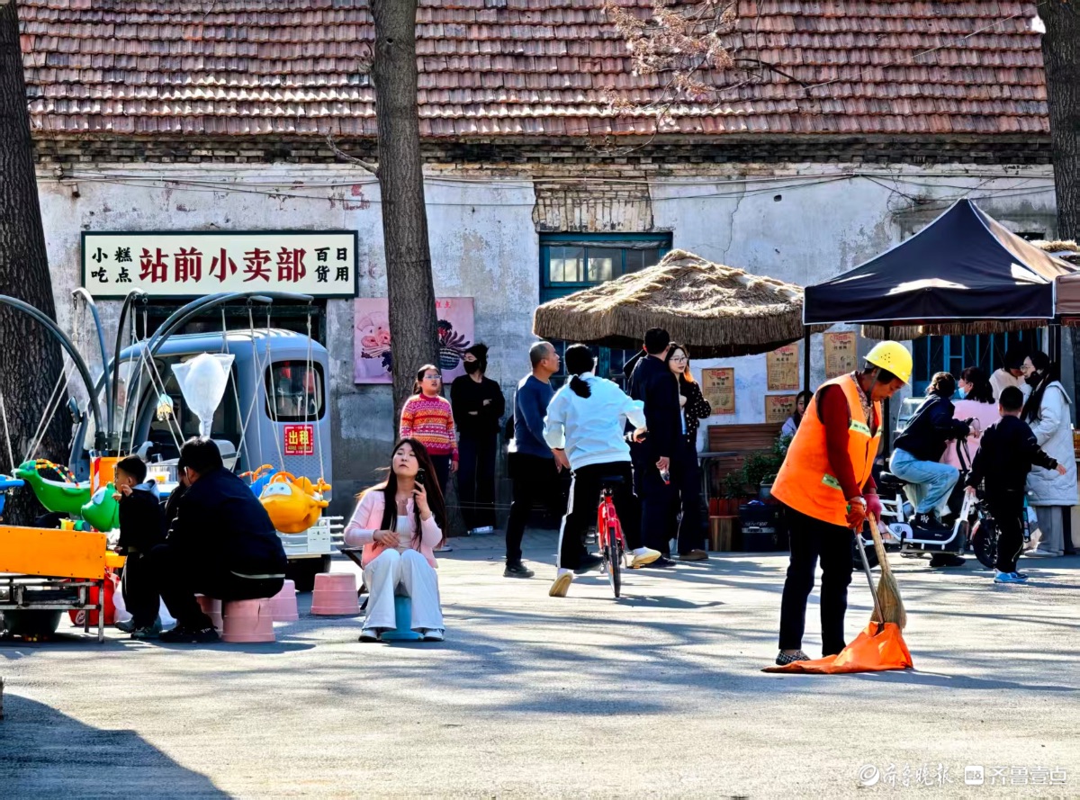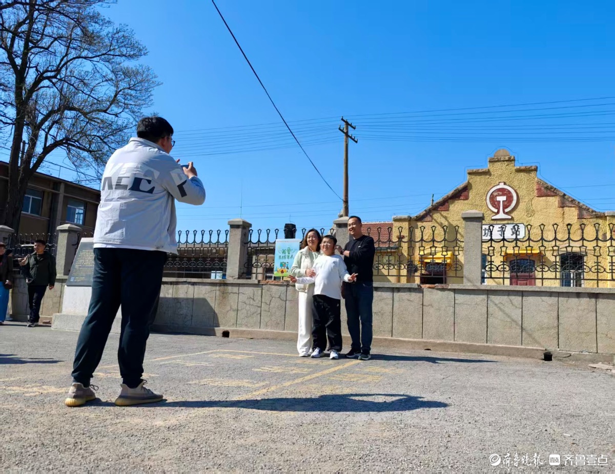 4月6日,在潍坊市坊子区坊茨小镇文化街区,来自全国各地的游客正在游览打卡。坊茨小镇位于潍坊市坊子区,以胶济铁路坊子段为中轴线向两侧发展。随着电视剧《南来北往》《家有七郎》等影视作品在此取景拍摄,使这里成为闻名全国的热门旅游打卡地。高伟摄