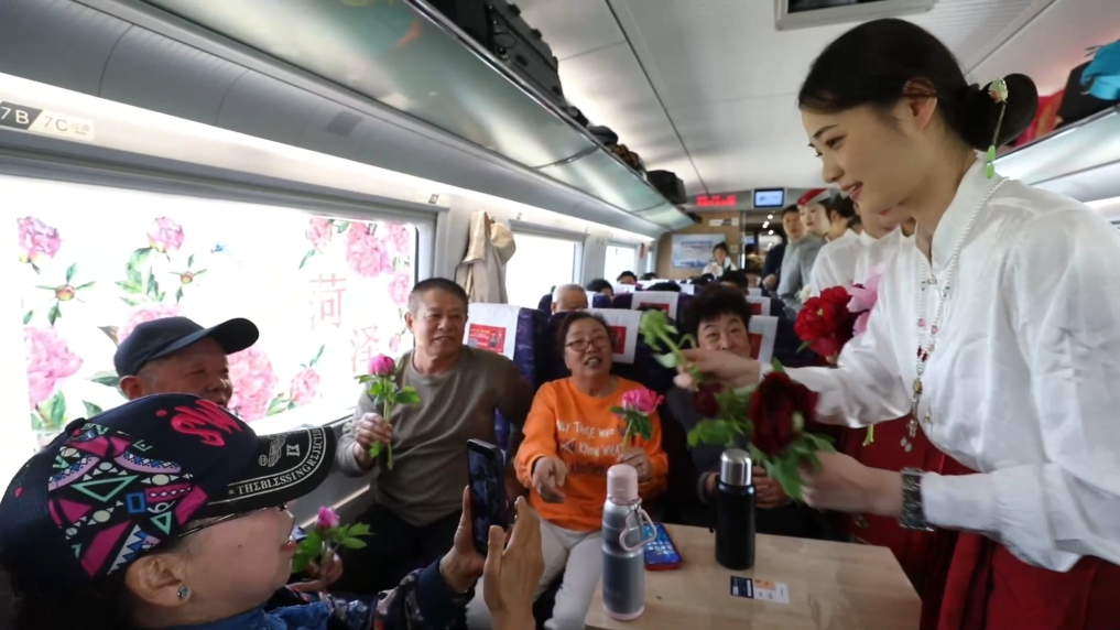 为服务2026世界牡丹大会、第35届菏泽国际牡丹文化旅游节,国铁济南局打造的“牡丹号”赏花列车于4月10日开行。以高铁为纽带,方便旅客赏花踏青,助力菏泽文旅发展。