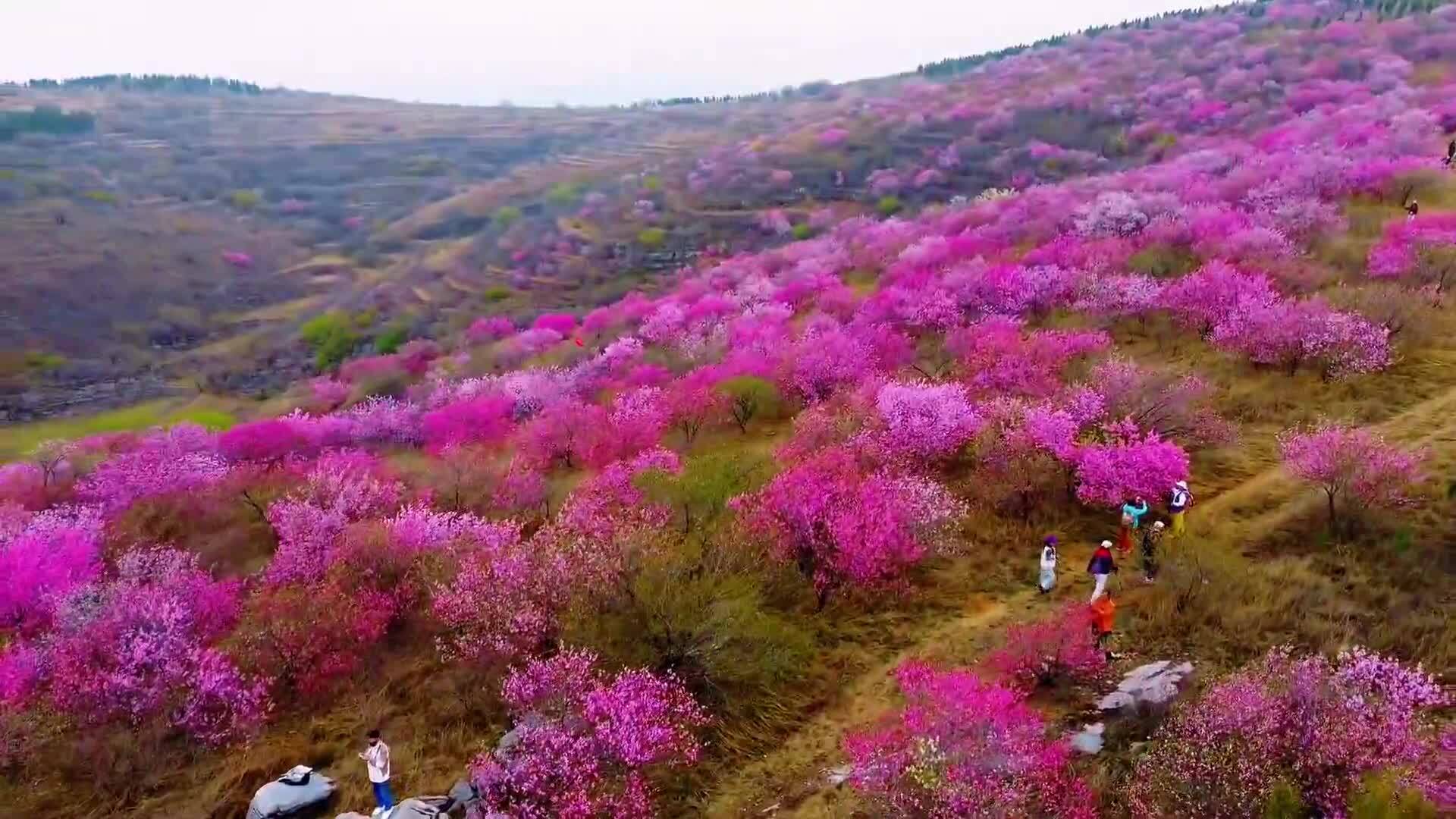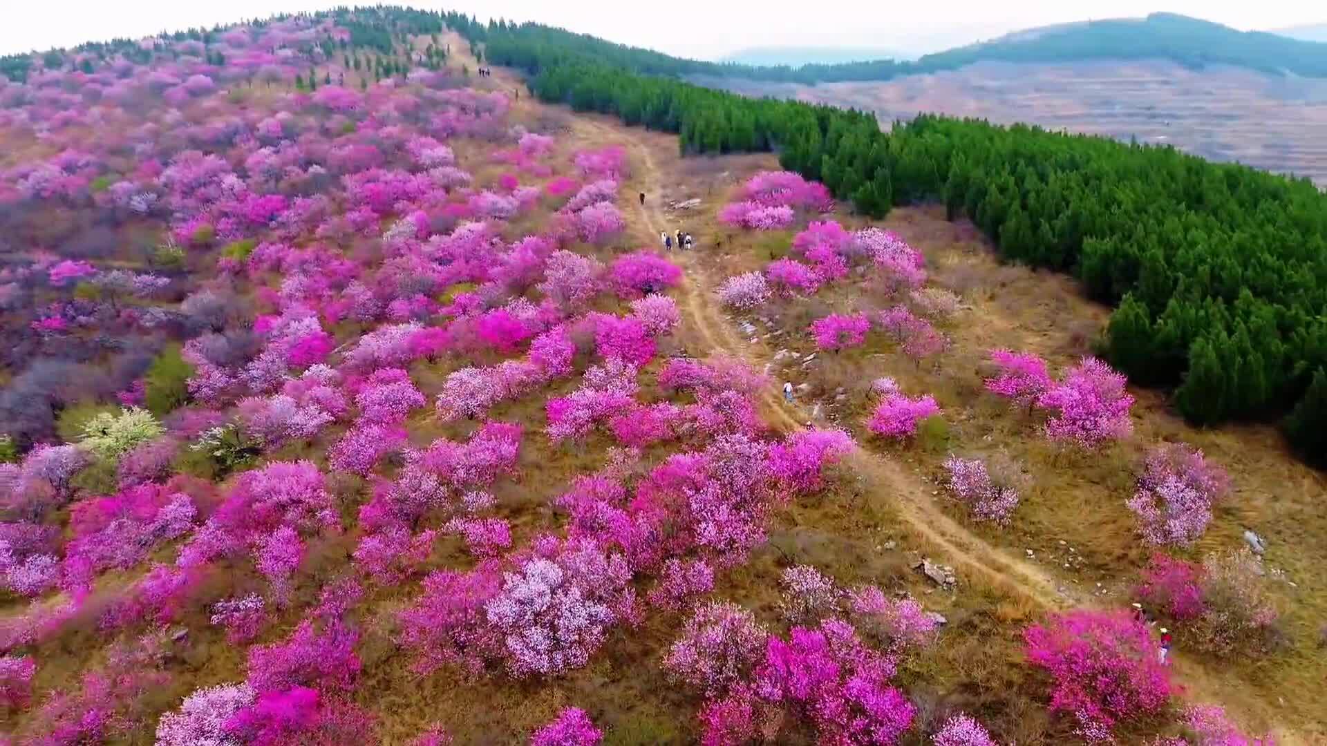 淄博:桃红松绿 漫山春光