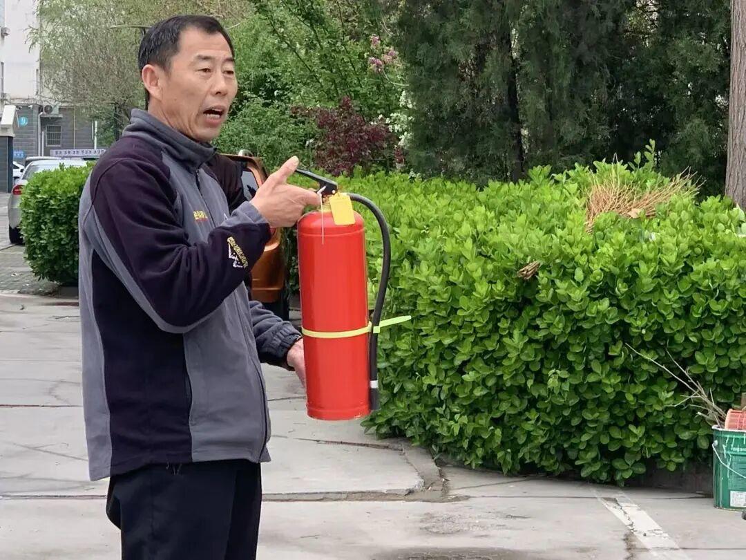 培训现场,消防安全员结合高层住宅小区特点,开展“干货满满”的理论讲解,围绕日常火灾隐患排查、初期火灾处置、火灾报警规范等核心内容,重点强调物业岗位的消防安全职责,提醒大家重点关注楼道杂物堆积、电动车违规停放充电、电气线路老化等常见隐患。同时,详细拆解灭火器使用标准,明确使用前需检查压力、铅封、瓶体及有效期,灭火时需站在上风口,保持3—5米安全距离,严格遵循“提、拔、握、压”四步口诀,规范操作、科学避险。