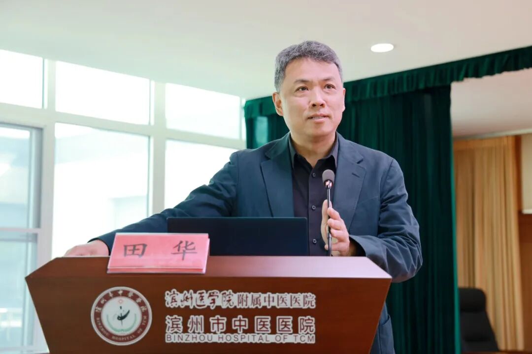 北京大学第三医院关节外科主任田华致辞,介绍了北京大学第三医院及骨科关节外科的相关情况,展现了医院及科室在国内的领先地位与强劲实力。他表示,近年来国家大力提倡优质医疗资源下沉,同时积极推动中医药事业发展,北医三院作为中西医协同“旗舰”医院试点单位,鼓励医师学习中医理论,对中医药的重视程度越来越高。而滨州市中医医院作为省级区域中医医疗中心,在区域内具有较强的中医实力与影响力,北医三院愿与滨州市中医医院携手合作,踏踏实实做一些实事,探索中西医结合治疗骨科疾病的新方案、新路径,为区域人民群众骨骼健康贡献绵薄之力。