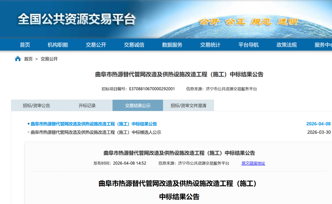 近日,曲阜市热源替代管网改造及供热设施改造工程(施工)项目中标结果正式揭晓。山东高速集团旗下两公司——山东高速德建集团有限公司和山东高速德建建筑科技股份有限公司组成的联合体中标该项目,中标金额5.27亿元。