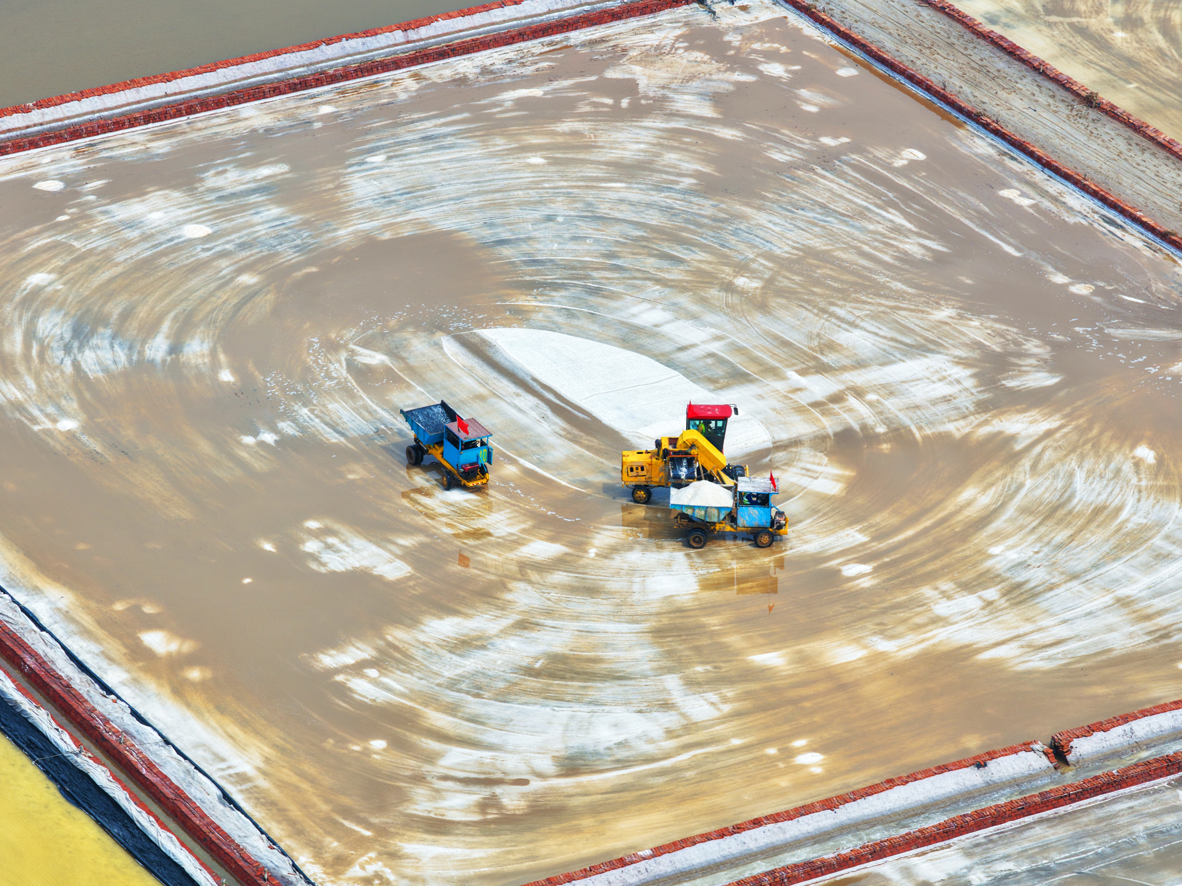 如今,当地40万亩七彩盐田已形成“春收、秋旺、全年稳”的生产格局,机械化采收助力原盐产能稳步攀升,100万吨原盐产能不仅为全国盐业供应提供坚实支撑,更通过全产业链延伸,带动盐田虾养殖、溴素提取、苦卤化工等产业协同发展。以“小盐粒”撬动“大发展”,为乡村振兴注入强劲动能。