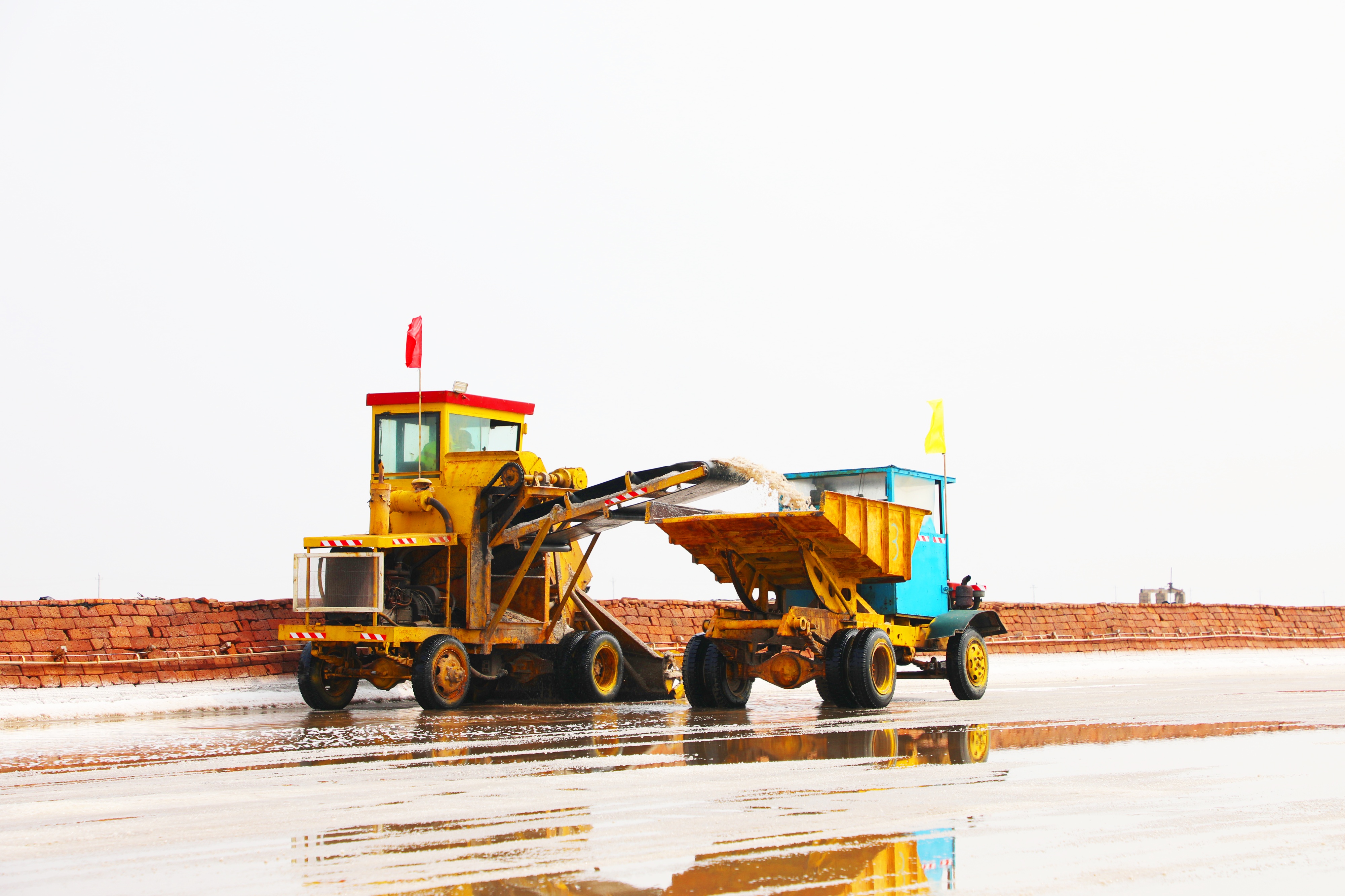 在当地盐田产区,一片片规整的盐池里,雪白的原盐在春日暖阳下结晶成型,大型收盐机械穿梭其间,正式拉开机械化春盐采收的序幕。机械收盐设备匀速行进,旋转收盐耙高效搅动、收集池底颗粒饱满的原盐,原盐被源源不断转运至运盐车辆,整套流程一气呵成,替代了传统人工收盐的繁重劳作,既大幅提升采收效率,又最大程度保证原盐完整度与纯净度。运盐车辆往来穿梭,将刚采收的原盐运往储运区进行堆放,机械化、自动化的作业场景,成为七彩盐田里最生动的丰收画卷。