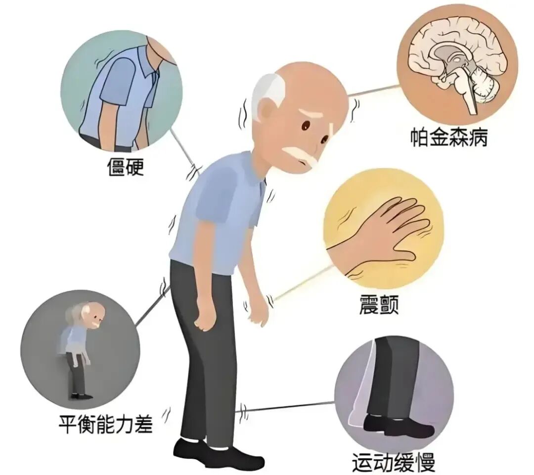“僵”:身体僵硬,感觉四肢不如以前灵活,面部表情减少;