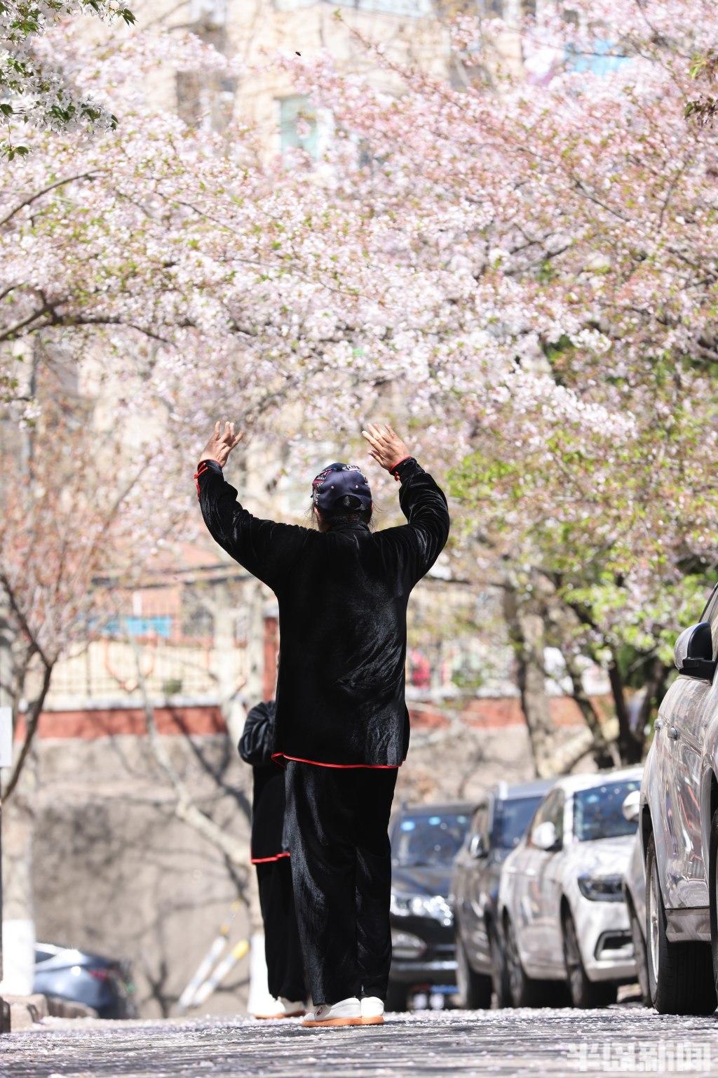 4月13日,三明南路樱花进入盛花期,不少市民游客驻足其间,定格春日美好。作为岛城颇具人气的赏樱点位,三明南路虽不及中山公园樱花大道声名远扬,却以清幽雅致的景致独树一帜。一到春季,道路两侧樱树繁花满枝,粉白花瓣随风轻舞,宛若飘雪,为街巷增添浪漫诗意。吸引众多市民与游客前来踏青赏花、拍照留念。