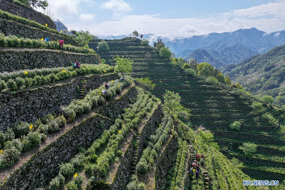 [신화망 베이징 4월14일] 봄차 수확철을 맞아 각지 차 농가들이 맑은 날씨를 이용해 찻잎 수확에 나서며 시장 공급에 속도를 내고 있다.
