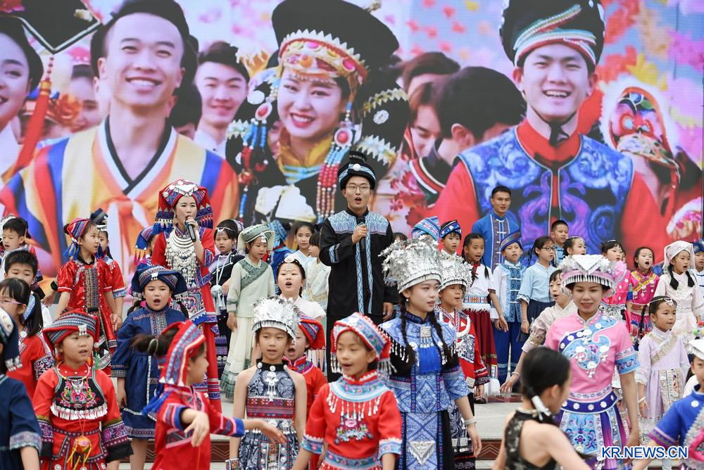 [신화망 중국 난닝 4월 14일] 13일 상사(上巳)절(음력 3월 3일)을 맞아 광시(廣西) 난닝(南寧)시 빈후루(濱湖路)초등학교 교육그룹 빈후(滨湖)초등학교 교육그룹 빈후캠퍼스에서는 전체 교직원과 학생들이 한자리에 모여 전통 명절을 축하했다.