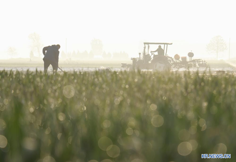 [신화망 베이징 4월 14일] 기온이 오르면서 중국 각지에서 파종 작업이 한창인 가운데 논밭 곳곳에선 분주한 풍경이 이어지고 있다.