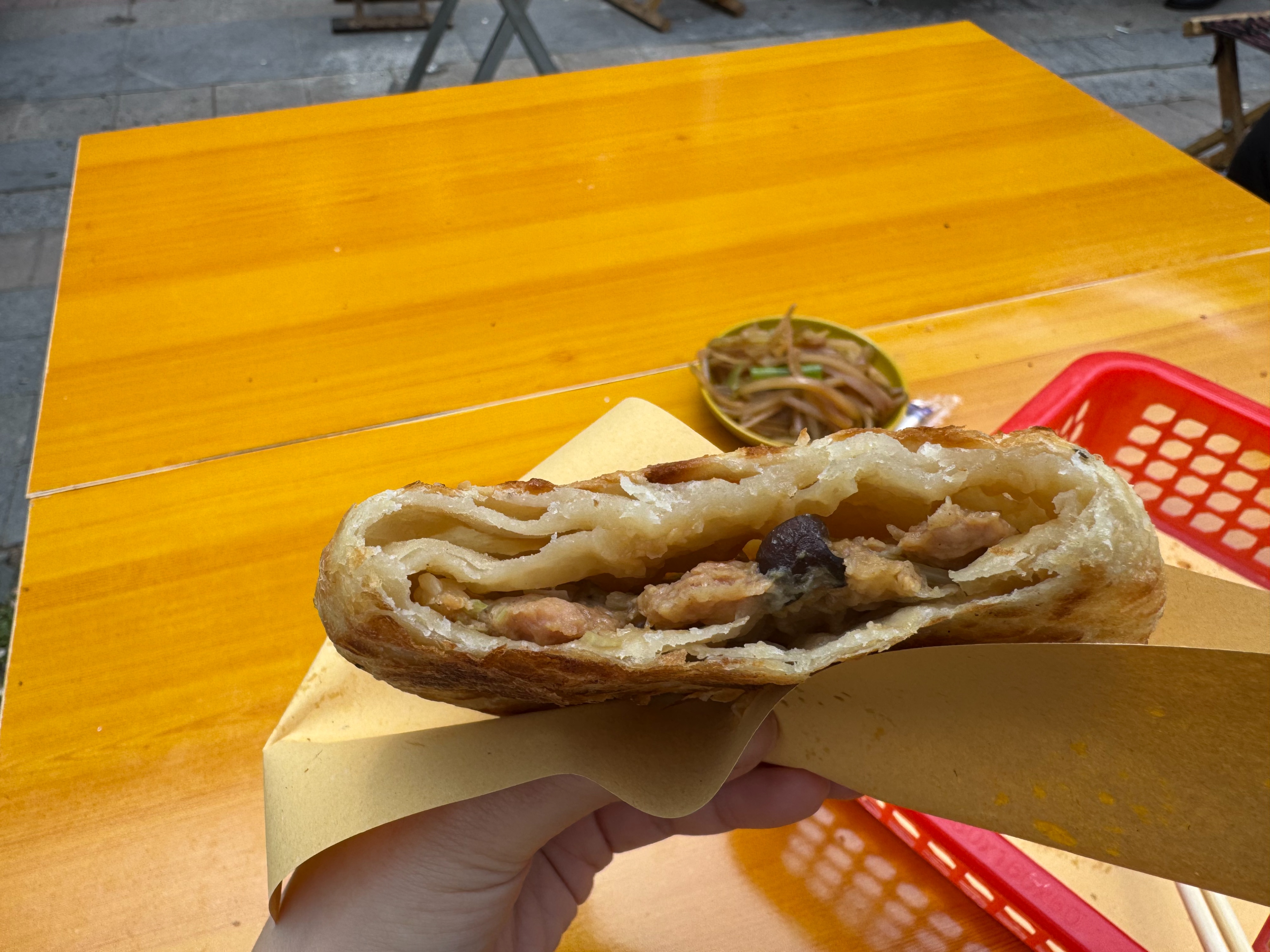 出炉的火烧,趁热咬上一口,是让人直呼“过瘾”的口感。酥脆的外皮一碰就掉渣,内里的肉馅鲜嫩多汁,一点不腻。配上一碗嫩滑的豆腐脑,妥妥的“早餐天花板”。