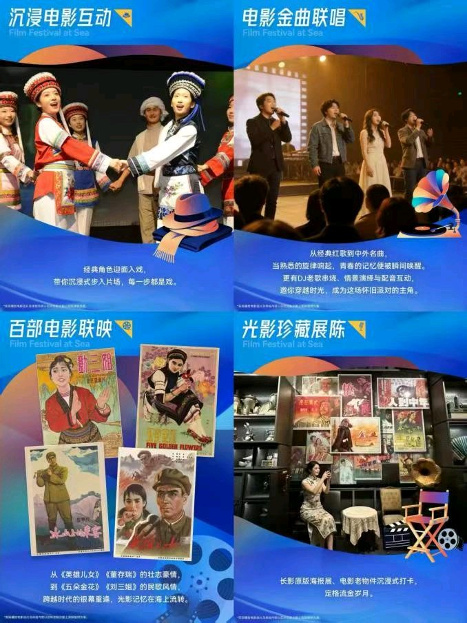 活动期间,“爱达·地中海”号将打造为“海上电影艺术宫殿”,在横跨三层甲板的奥西里斯大剧院循环展播百部经典修复影片,《五朵金花》《刘三姐》《冰山上的来客》等时代经典将在蔚蓝海景映衬下焕新呈现,让观众在海浪声中重温时代记忆、感受光影魅力。除影片展播外,邮轮上还精心策划光影游园会、电影金曲联唱等丰富活动,推出以经典影片为灵感的沉浸式互动演出,推动电影艺术从银幕走向现实,实现经典文化与现代文旅的双向赋能,为游客提供兼具文化内涵与休闲体验的海上旅程。