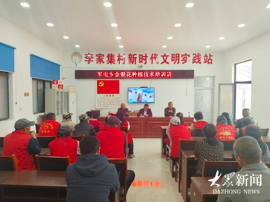 军屯乡邀请流峪镇永胜村金银花种植户岳凡强给村民培训。