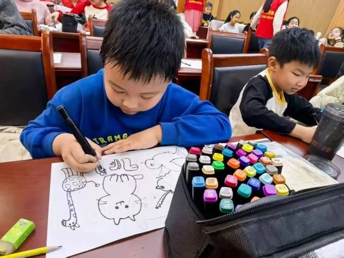 4月11日,新苑社区“滨滨学堂”变身“小小画室”,一场主题为“线条勾世界,童心绘自然”的少儿绘画活动欢乐开启,孩子们握着画笔,像施展魔法一样,把眼中的春天一笔一笔“搬”到了纸上。