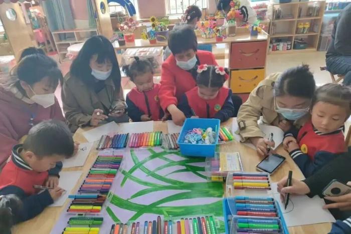 讲解结束,孩子们迫不及待地拿起画笔,有的画大树,有的画花朵,还有的画飞翔的小鸟……一笔一划认真勾勒,涂上自己喜欢的颜色。不一会儿,一幅幅充满童趣的作品诞生了——绿的叶、红的花、蓝的天,还有孩子们笔下“会笑”的太阳。每一幅画都是孩子们心中独一无二的自然故事。