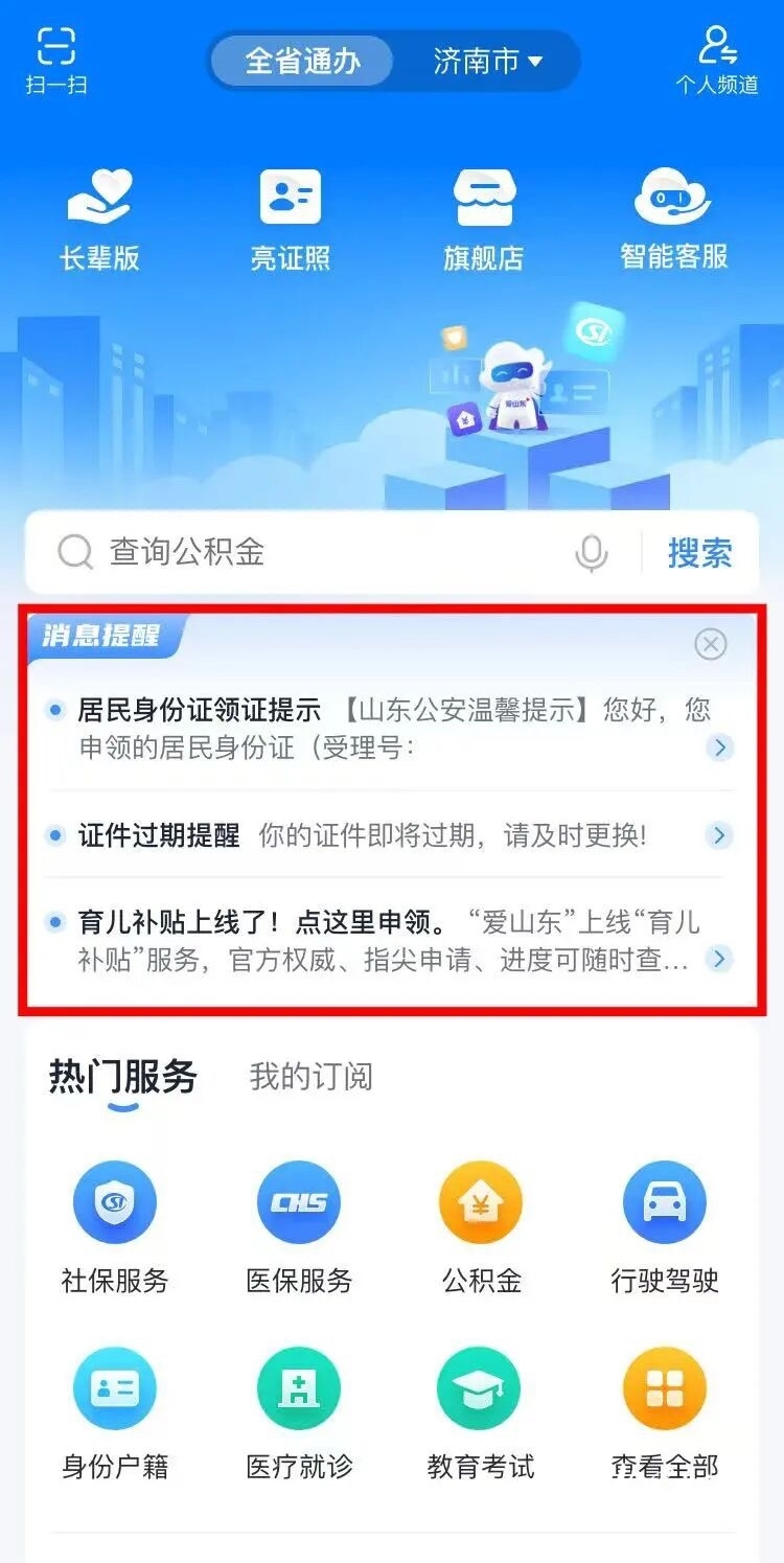 新增首页消息动态提醒功能,精准破解用户反映的“办件进度查找繁琐”“重要事项易遗漏”等问题。当用户的办件进度有更新,首页将自动展示消息提醒,办事进度实时更新、重要事项精准推送,让政务服务更有温度。