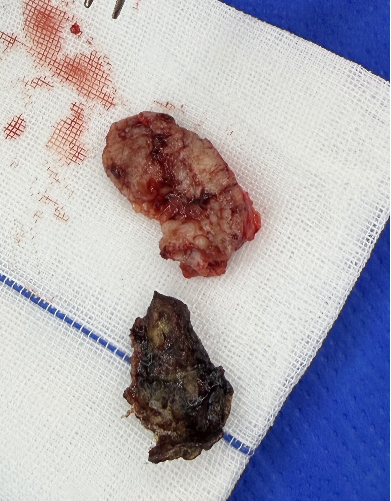完整切除鼻部癌变组织,术中快速病理证实切缘阴性,彻底清除病灶、为患者的长期生存奠定了基础;针对鼻部缺损,团队设计了个性化的局部皮瓣转移方案,将邻近的面部组织精准转移至缺损区域,完成鼻部外形的重塑。手术中,团队将部分疤痕巧妙隐藏于左侧鼻唇沟的自然褶皱中,既最大程度减少了外露创面、实现了术后外观的自然美观,又最大程度保留面部功能与容貌;术中精细化缝合与止血,减少手术创伤。经过耳鼻咽喉科团队的精心术后护理与康复指导,患者恢复情况良好,鼻部外形自然,皮瓣血运佳,无感染、坏死等并发症,不仅成功摆脱了癌症的威胁,更重获了正常的面部外观,极大提升了生活质量与自信心。