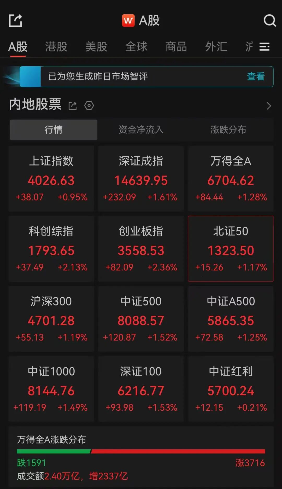 A股收评:超3700只个股飘红,三大指数集体收涨