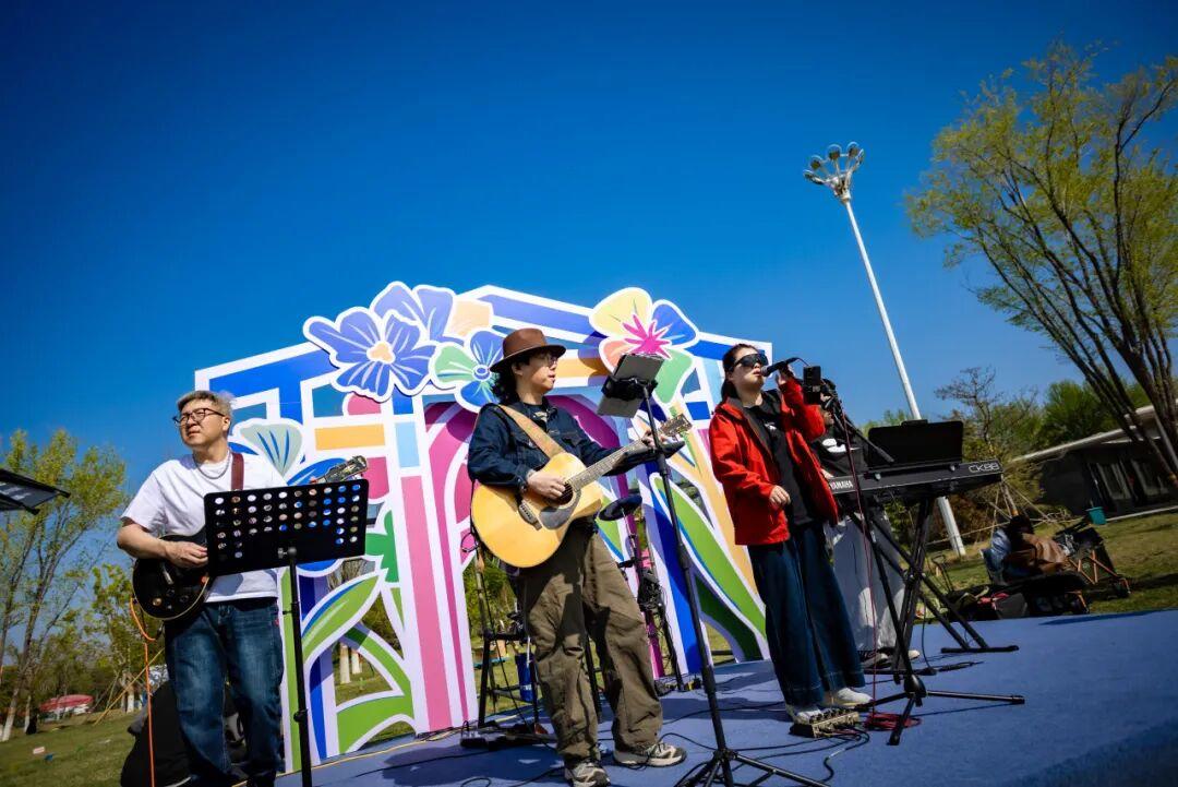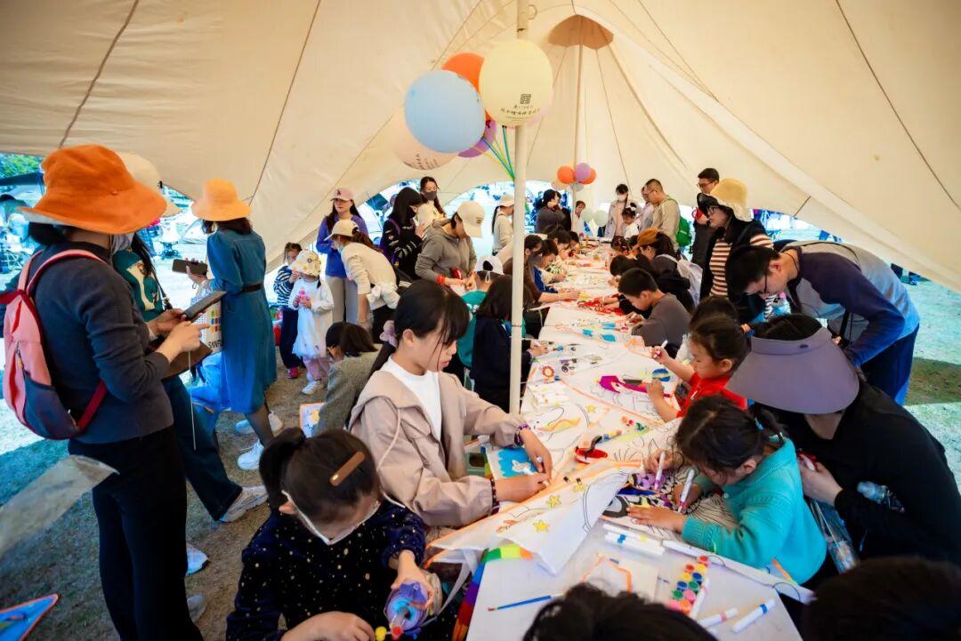 春日市集里,非遗手造、轻奢美食、咖啡饮品、户外装备……摊位前人流不断,烟火气满满。非遗课堂上,葫芦雕刻、串珠、钩织体验让大小朋友静下心来感受手作的温度。春风歌会主分会场交替开唱,民谣旋律让人忍不住跟着哼唱,露营的氛围感直接拉满。