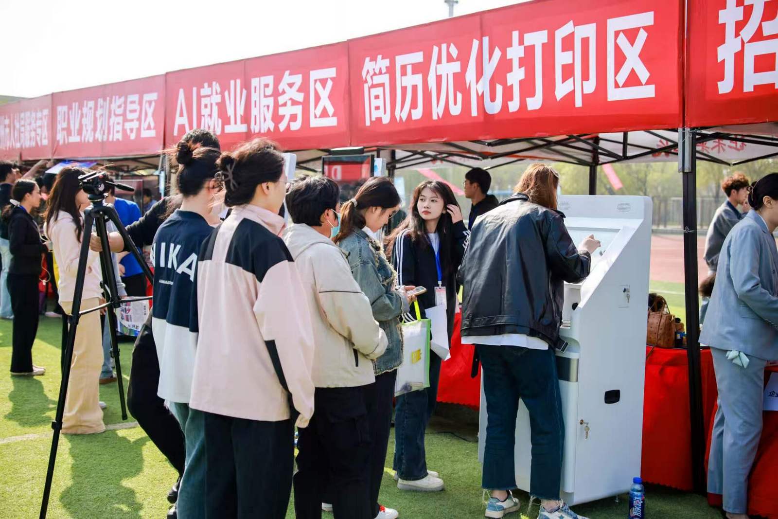 招聘会现场,最吸引眼球的莫过于“AI智慧就业服务区”。AI简历修改、AI模拟面试、简历打印……智能化设备前围满了跃跃欲试的同学。“AI帮我分析了简历里的措辞和排版,还给出了优化建议”商学院毕业生董艺林现场体验后连连点赞。除了黑科技,现场还有校内外专业行业导师“一对一”生涯规划咨询,帮助学生厘清职业方向。