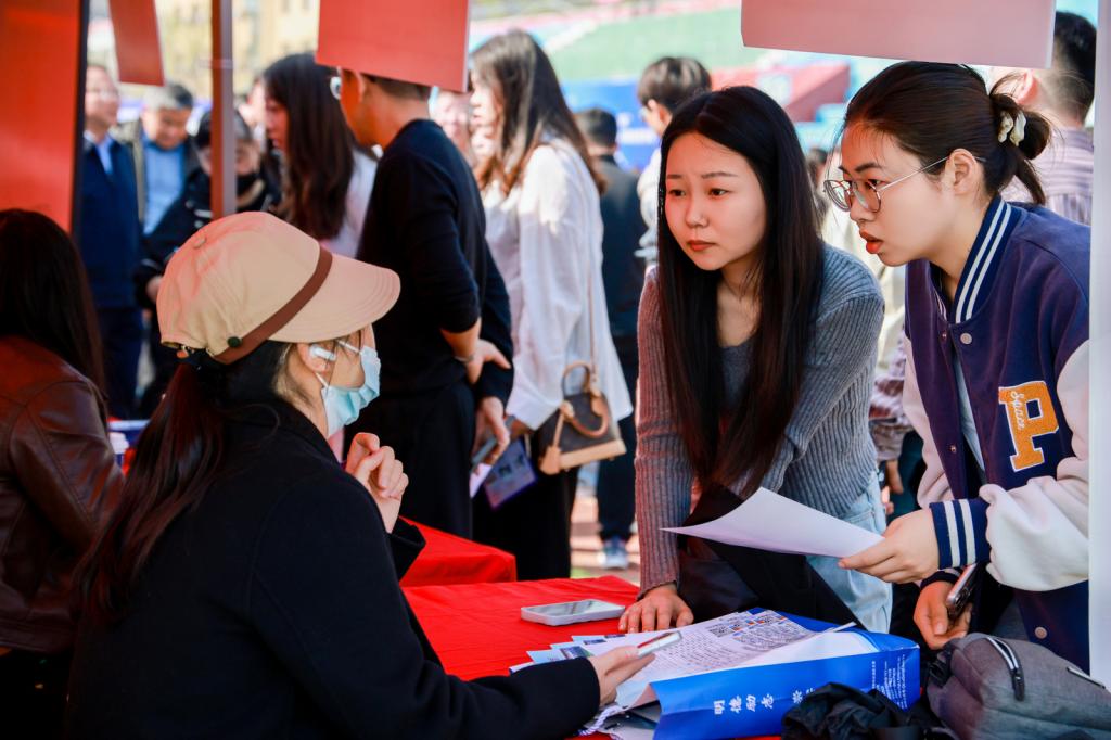 与往年不同的是,本次招聘会不仅面向应届毕业生,还特别设置了实习岗位专区,200余家用人单位面向非应届在校生提供实习机会。“我大三就能提前感受职场,还能找到对口的实习岗位,真的太贴心了。”来自化学专业的大三学生武欣语说。
