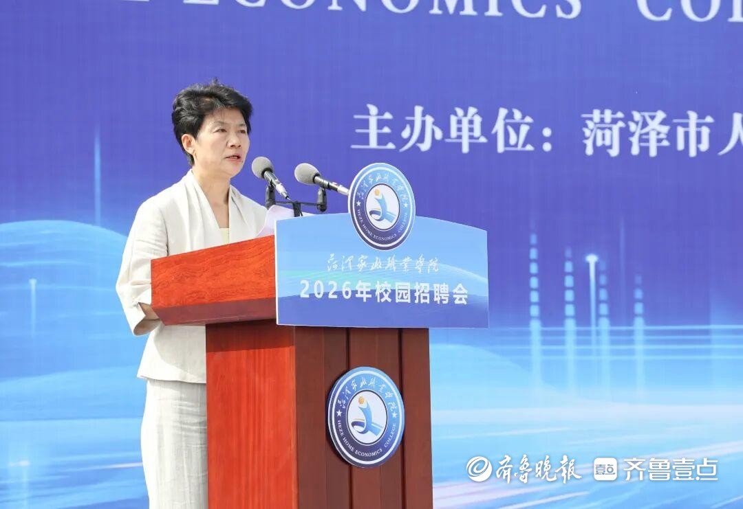 随后,菏泽市委教育工委常务副书记、市教体局党组书记、局长杨彬,菏泽市人社局党组书记、局长梁惠民,单县人民政府党组成员、副县长穆静先后致辞,对学院办学成果与就业工作给予高度肯定,对深化校地、校企合作,助力毕业生高质量就业提出期望。