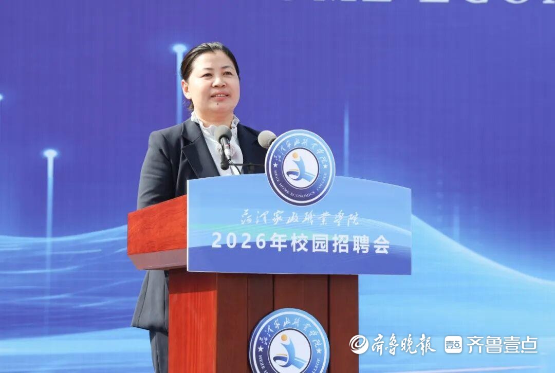 开幕式上,学院党委书记刘芸发表致辞。她表示,当前学院正抢抓国家“新双高”建设机遇,锚定“建成办学特色鲜明、服务发展显著的高水平高职院校”奋斗目标,全面落实立德树人根本任务,坚持创新引领、内涵发展,全力书写“强国建设,职教何为”的崭新篇章。刘书记介绍,学院办学历史逾60年,在校生1.6万人,生源覆盖全国20个省市,打造3个省级高水平专业群,5个专业实现“三二”专本贯通培养,多项专业获评国家级、省级重点特色专业。过去一年,学院牵头召开全国现代家政产教融合共同体会议、鲁西新区产教联合体年会,举办首届鲁台护理技能友谊赛,服务“一带一路”建设能力稳步提升,先后获评山东省数字经济创新人才基地、山东省博士后创新实践基地。刘书记表示,学院始终将毕业生就业工作摆在突出位置,建成大学生就业创业赋能中心,开展“访企拓岗促就业”专项行动,常态化举办求职技能赛事与职业技能培训,十余万名毕业生凭借扎实技能与过硬作风赢得社会广泛赞誉。她希望用人单位广纳贤才,同学们自信求职,在新岗位上施展才华、服务社会。