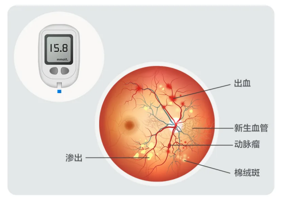 糖尿病眼病的发生率随着糖尿病病程的延长而显著增加,且与血糖控制水平紧密相关。随着病程的延长,并发症的严重程度会日益增加,10年以上的糖尿病患者有60-70%并发糖尿病视网膜病变。如果治疗不及时,会有较大致盲风险。正因此,糖尿病眼病也被称为“甜蜜”的视力“杀手”。