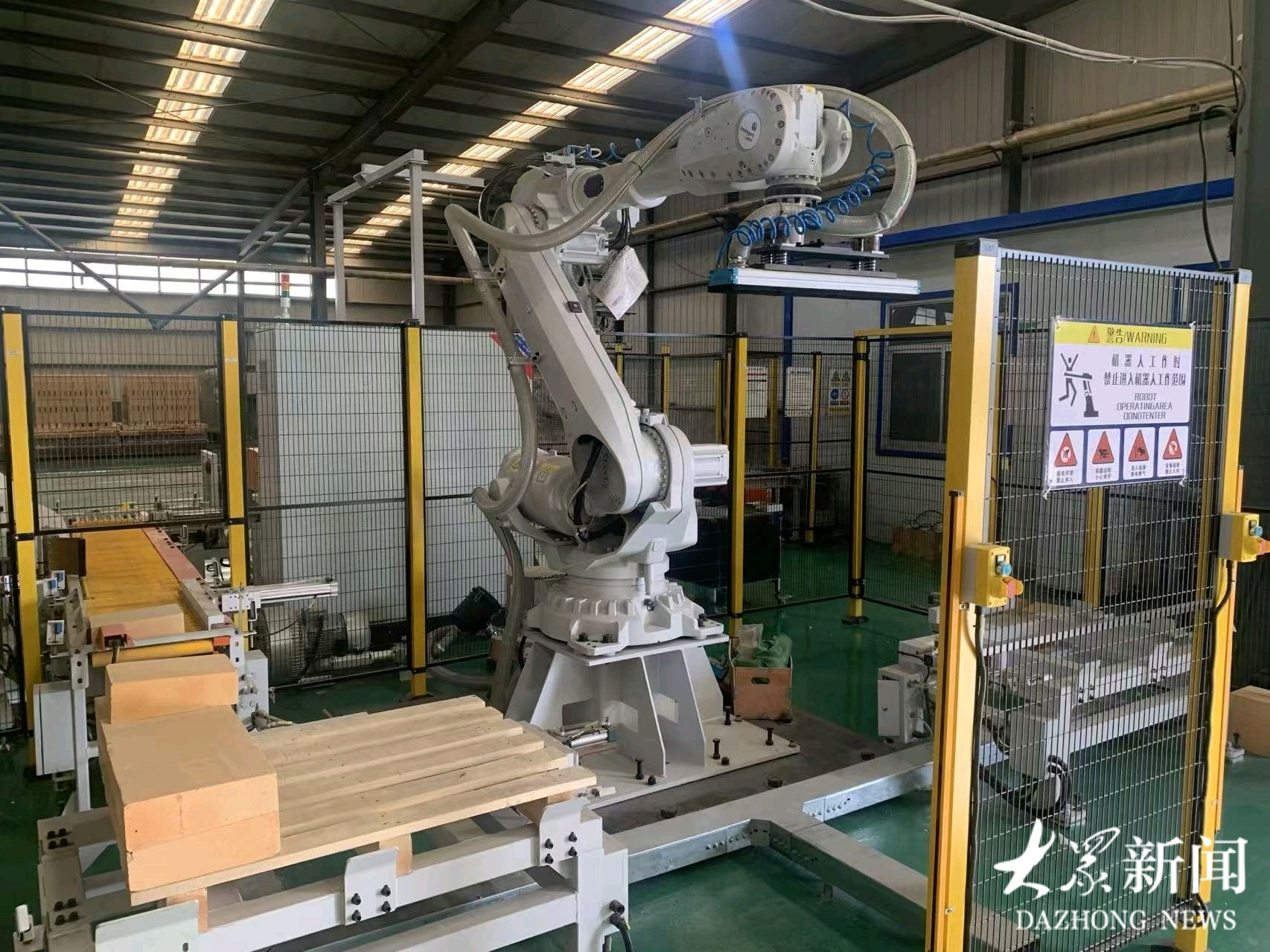 作为年产2万吨粘土质、高铝质耐火砖的企业,政泰产品远销日本、澳大利亚、欧洲等高端市场,广泛应用于冶金、建材、电力等高温领域重点工程。过去,耐火砖压制成型是纯粹的体力活,环境差、劳动强度大,年轻人望而却步,企业面临用工难题。如今,政泰的智能生产线实现了从送料、压砖到取砖、码垛的全流程机器人作业。通过自动送料机、自动压砖机与工业机器人的联动系统,结合力控传感器实现“毫米级”精密操作,不仅让砖坯密度均匀性大幅提升,更让单线产能提升30%以上,高端产品合格率由90%提高到98%。