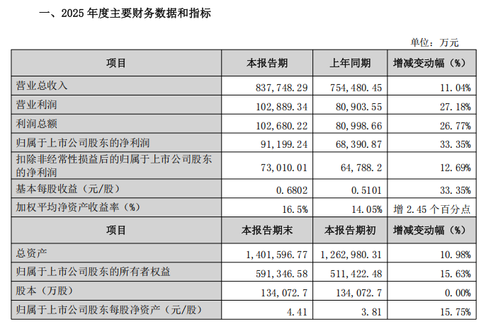 值得注意的是,公司扣除非经常性损益后的归属于上市公司股东的净利润为7.30亿元,同比仅增长12.69%,与归母净利润33.35%的增速形成明显差距。