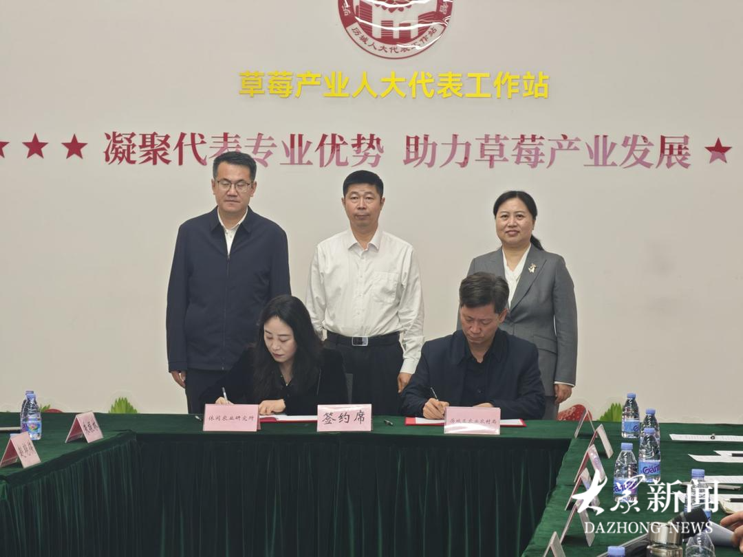 山东省农科院休闲农业所与历城区农业农村局相关负责人签署战略合作协议。