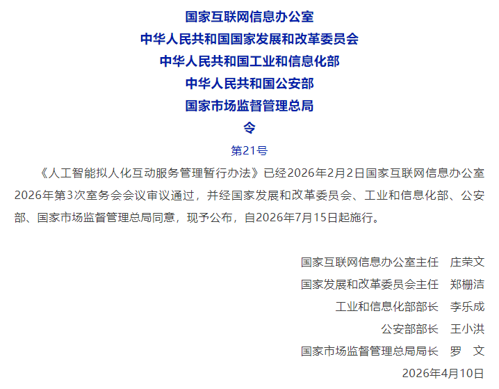 随着AI对青少年的影响不断加深,2026年4月《人工智能拟人化互动服务管理暂行办法》发布,提出拟人化互动服务提供者不得向未成年人提供虚拟亲属、虚拟伴侣等虚拟亲密关系的服务;向不满十四周岁未成年人提供其他拟人化互动服务的,应当取得未成年人的父母或者其他监护人的同意。拟人化互动服务提供者应当建立未成年人模式,提供未成年人模式切换、定期现实提醒、使用时长限制等个性化安全设置选项。
