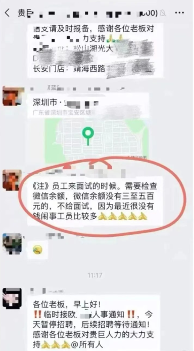 微信余额没三五百元不给面试?中介:担心员工工作几天就跑路