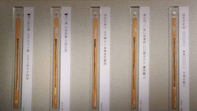 与齐《论语》同批上新的还有:在汉代既是文学经典又是重要“谏书”的《诗经》简,其上“诗三百五扁凡千七十六章七千二百七十四言”的文字,实证海昏简《诗经》在随葬时为全本《诗经》;记录棋盘局势和行棋口诀的《六博》简,展现了王侯贵族的休闲娱乐生活;墓中总共出土600余枚、曾被刘贺在被废之时援引自辩的《孝经》简……