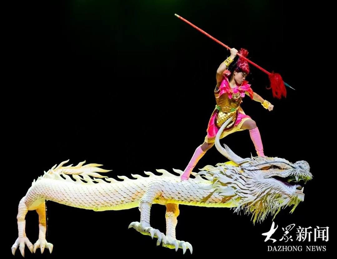 《杂技西游之闹天宫》 融合晃板弹碗、顶花坛等近10种技巧,以神话为骨,杂技为翼,演绎经典故事;红色杂技剧《挺进·渡黄河》以革命历史为蓝本,用杂技再现峥嵘岁月;《巾帼木兰·倒立》融传统技巧与巾帼情怀,刚柔相济。从传统绝活到现代剧作,从单一技巧到技、艺、故事相融,聊城杂技始终在创新中坚守根脉。